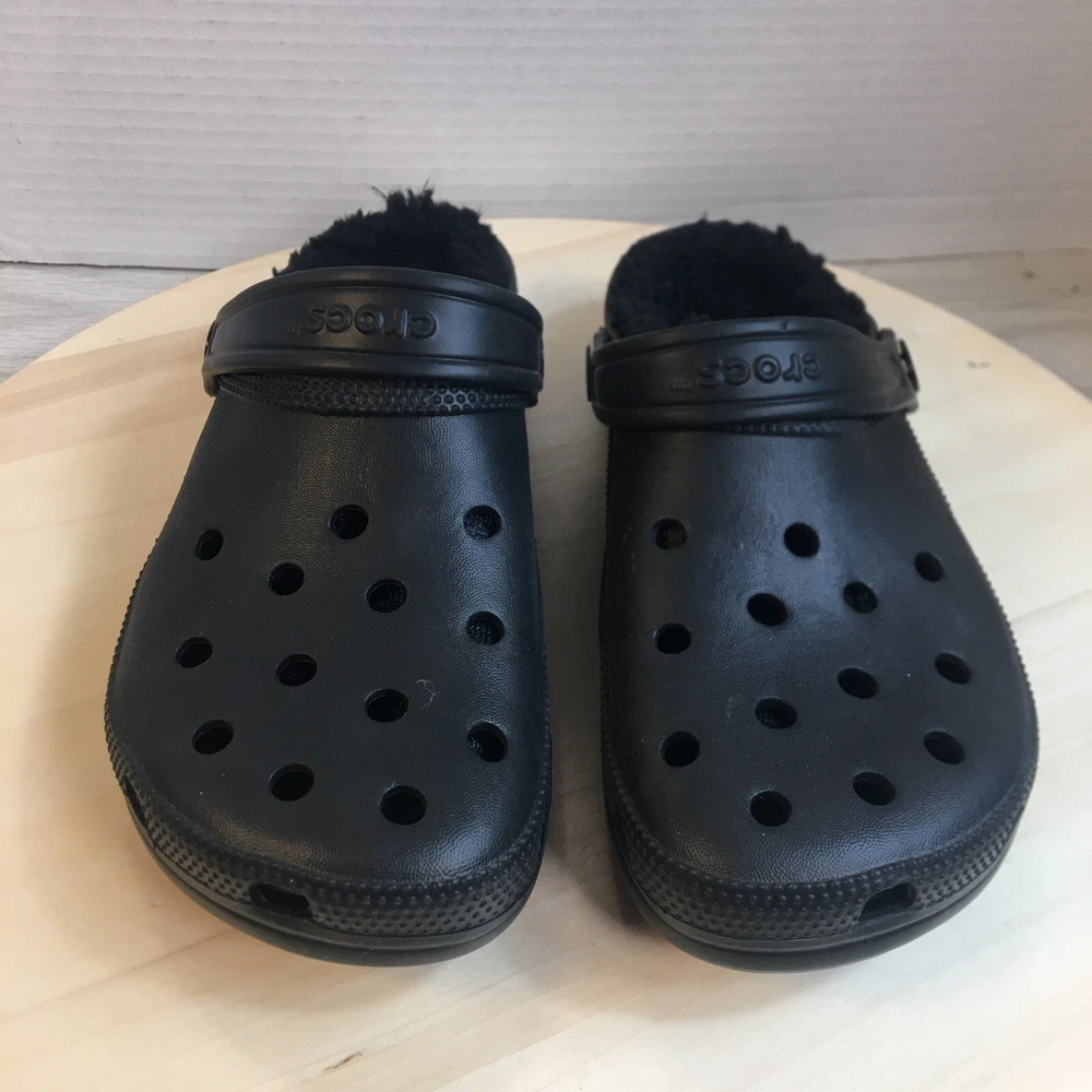 Crocs Classic Fur Lined Winter Clogs Women’s WarmComfort Shoes Black Size 7 Tbo#031