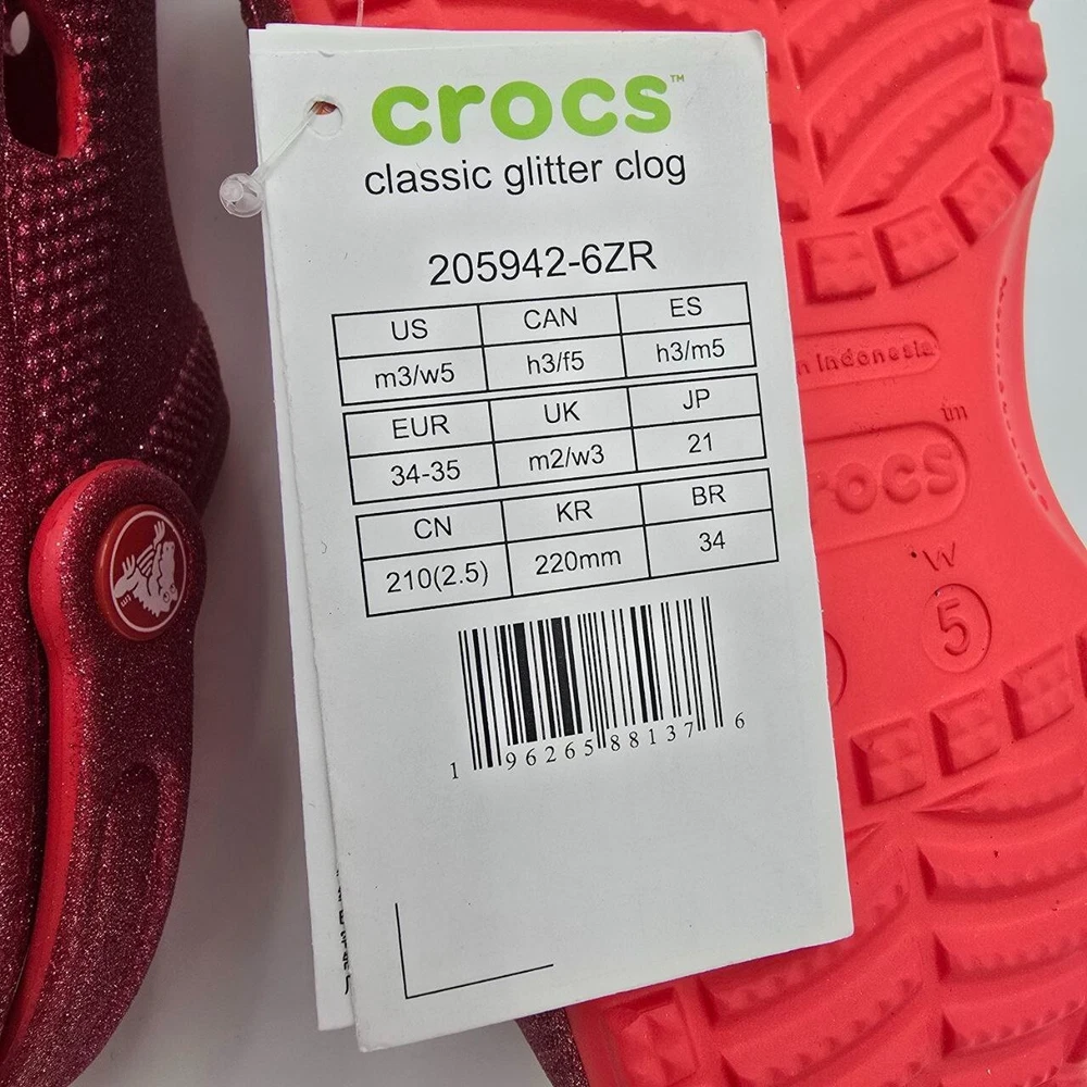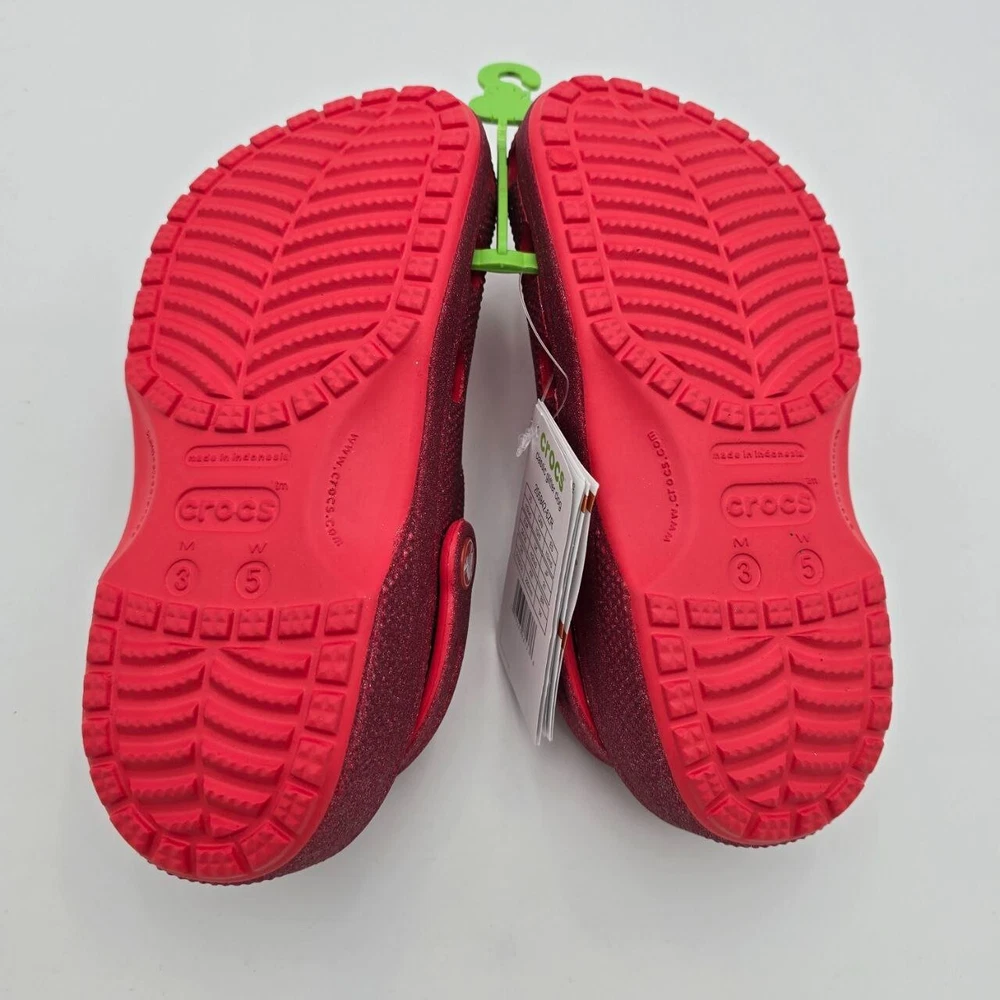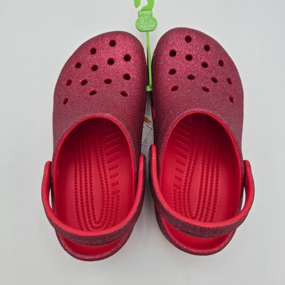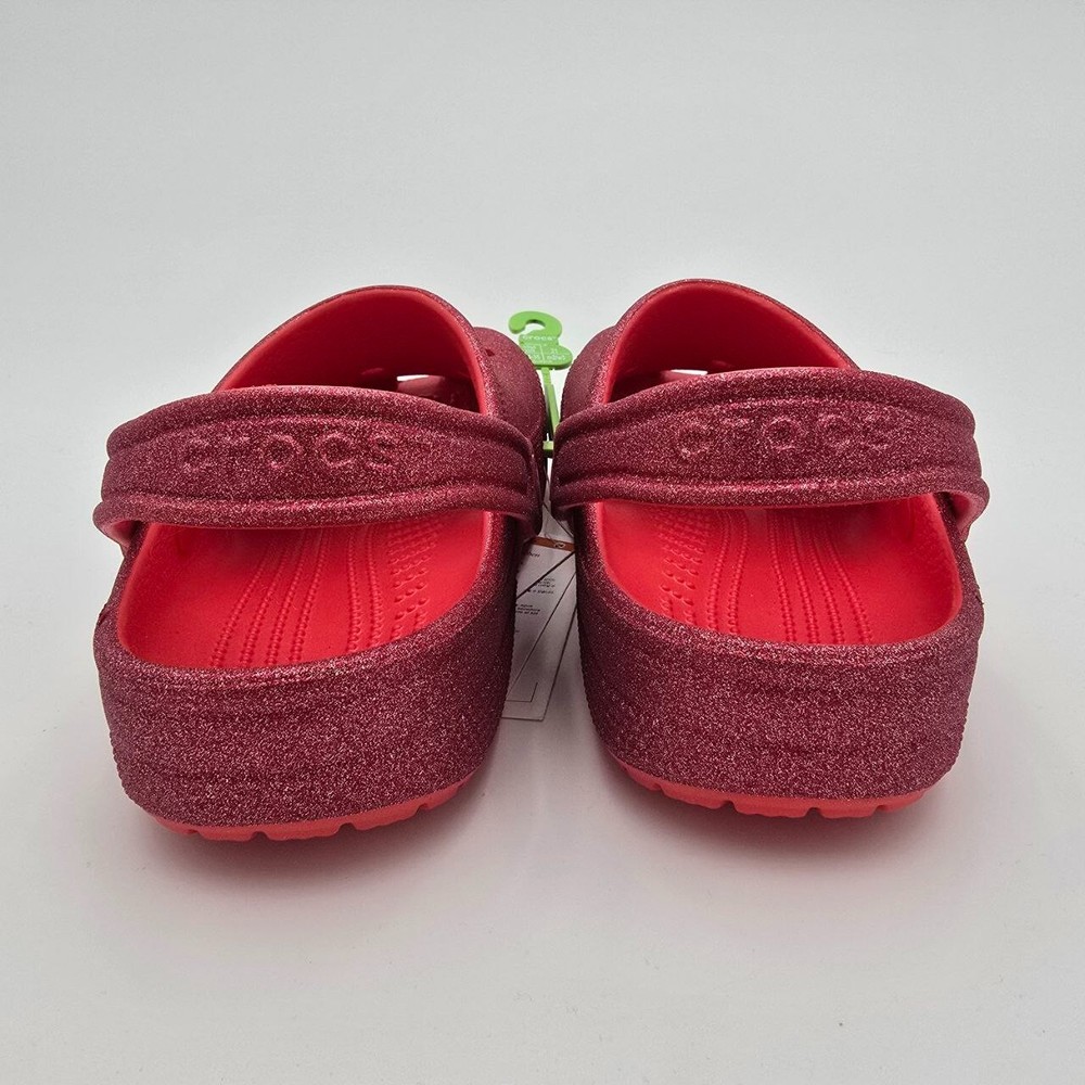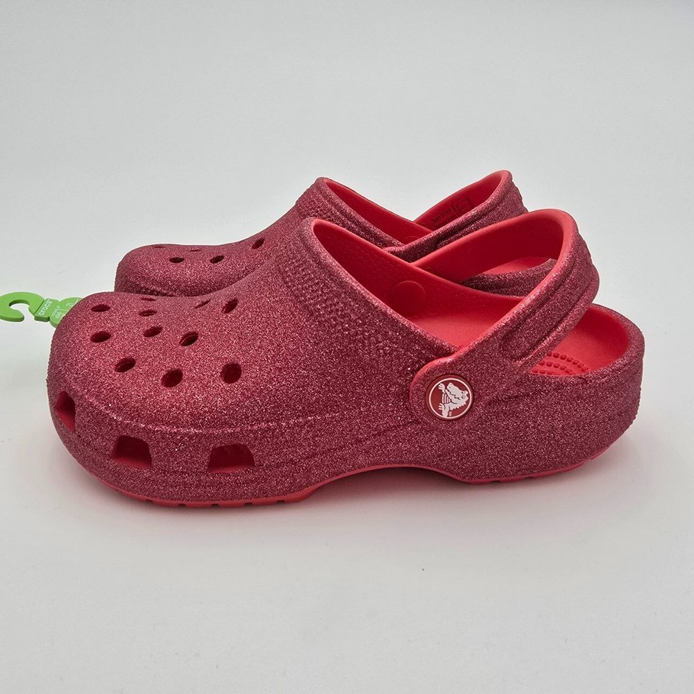 Experience everyday comfort with the Crocs Classic Glitter Clogs, perfectly crafted for girls who value both style and comfort. These vibrant red clogs are designed with a round toe and a convenient slip-on style, making them ideal for quick outings, travel, or casual wear. The glittering upper material adds a touch of sparkle to any ensemble, while the synthetic construction ensures durability and ease of care. Designed for versatile use, these clogs are suitable for a range of activities from beach visits to walking and school routines. The lightweight design, coupled with a cushioned insole and breathable lining, provides a comfortable fit that's perfect for wearing throughout the day. With their solid pattern and subtle ankle strap feature, these Crocs blend fun with functionality for any season.