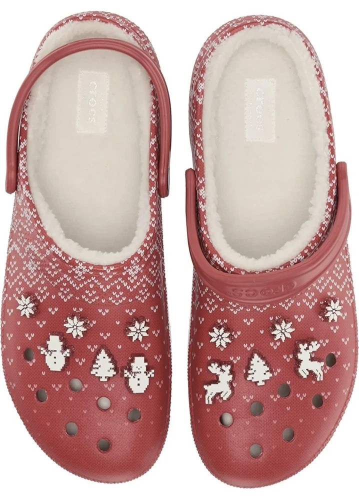 HomeCrocs Classic Lined Holiday Christmas Charm Clogs Red Mens Size 10 - Women’s 12