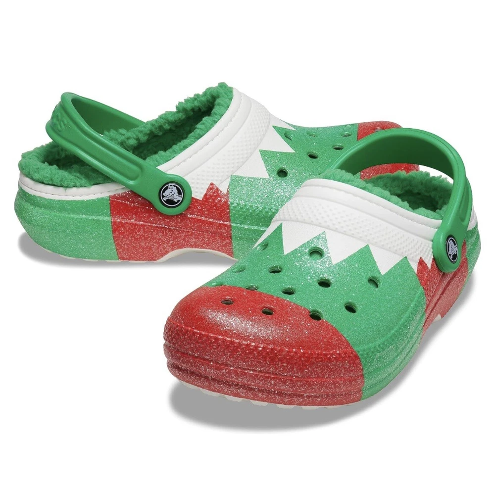 Crocs Classic Lined Holiday Clogs Christmas Elf Green Red Men Size 10 - Women 12