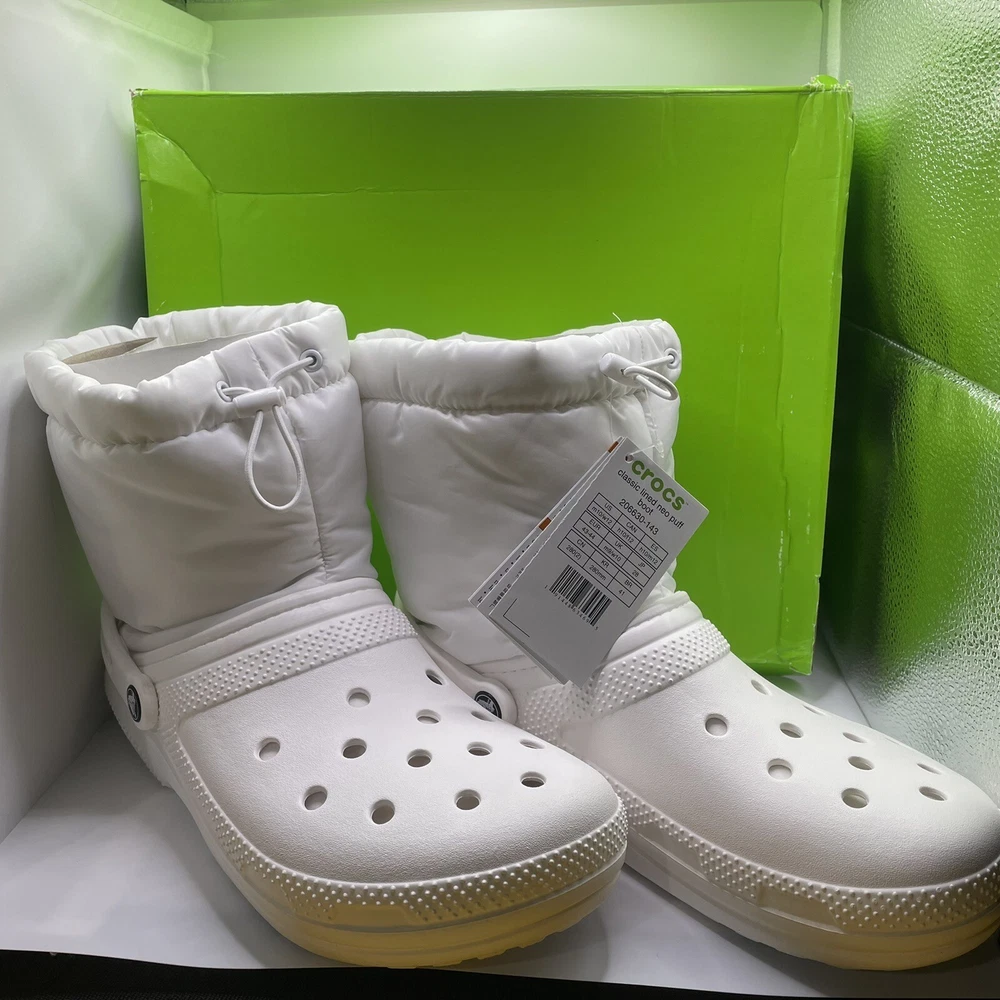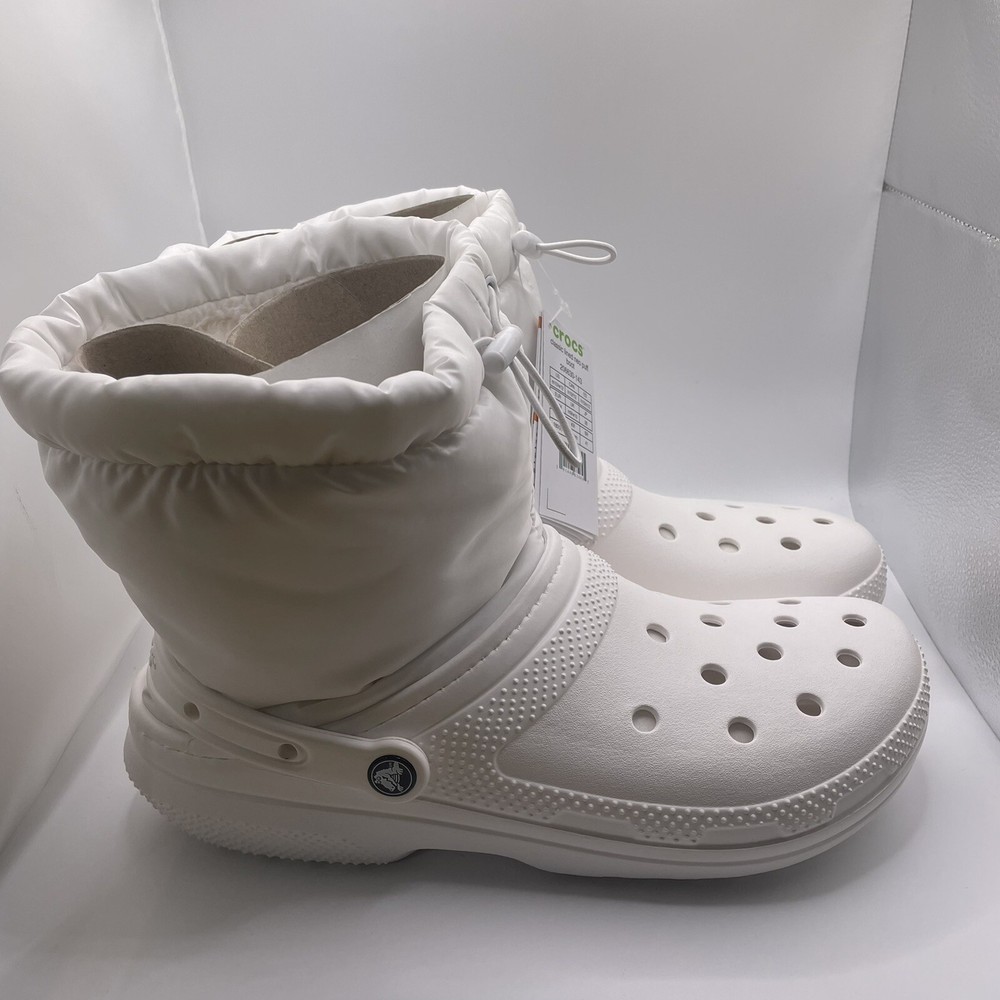 Crocs Classic Lined Neo Puff Boots Men 10 Women 12 White Winter