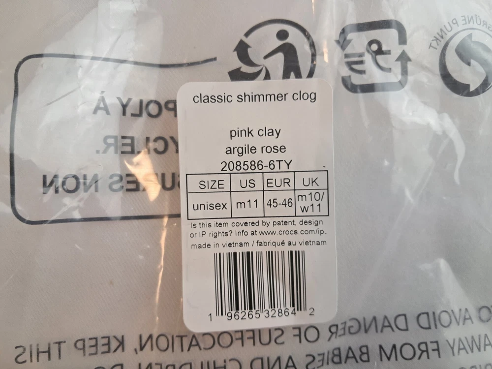 Crocs Classic Pink/Shimmer Clogs 208586-6TY Size Mens 11 Womens 13