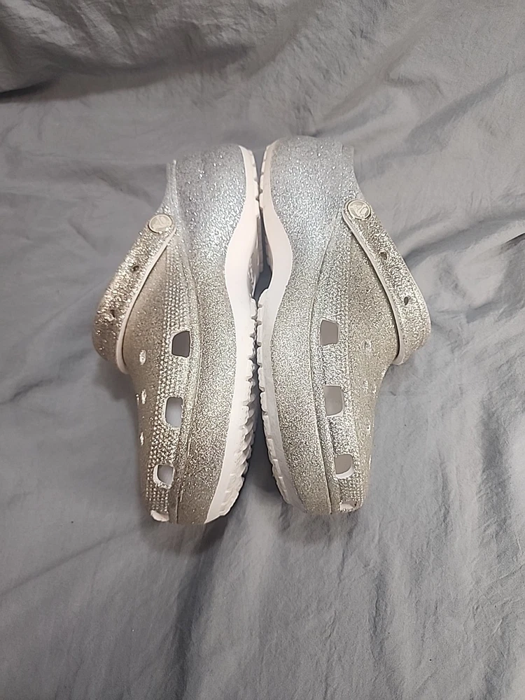 Crocs Classic Platform Glitter Ombre Clog Women’s size 9 Gold/Silver . Condition is Pre-owned. Shipped with USPS Ground Advantage.