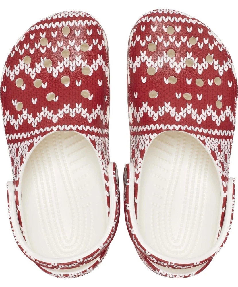 Crocs Classic Red White Clogs Holiday Christmas Sweater Womens Size 7 - Mens 5