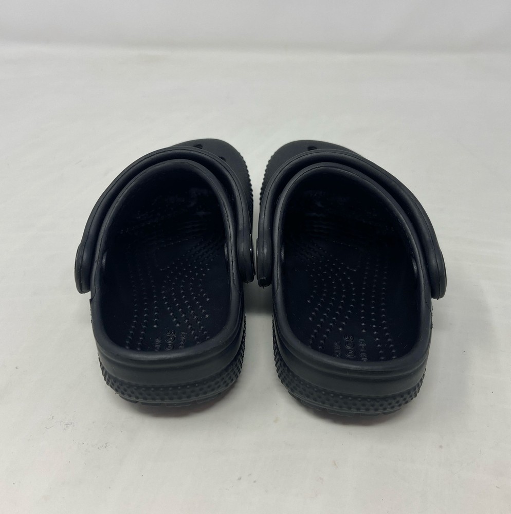 Outsole Material: Rubber Occasion: Casual Performance/Activity: Walking, Beach Model: Crocs Classic Heel Height: Flat (Under 1 in) Season: Summer, Fall, Spring Cleat Type: Rubber Lining Material: Synthetic Pattern: Solid Vintage: No Department: Unisex Kids Upper Material: Rubber Color: Black Toe Shape: Round Toe Shoe Shaft Style: Low Top Type: Slipper Handmade: No AU Shoe Size: 6 Features: Waterproof, Lightweight, Comfort, Breathable Insole Material: Rubber Product Line: Comfort Slide Heel Style: Flat Accents: Strap, Logo Style: Clog Brand: Crocs MPN: 204536 Theme: Classic, Modern, Sports US Shoe Size: 6 Seller Notes: “Used - Excellent” Shoe Width: Standard Cushioning Level: Moderate Closure: Slip On