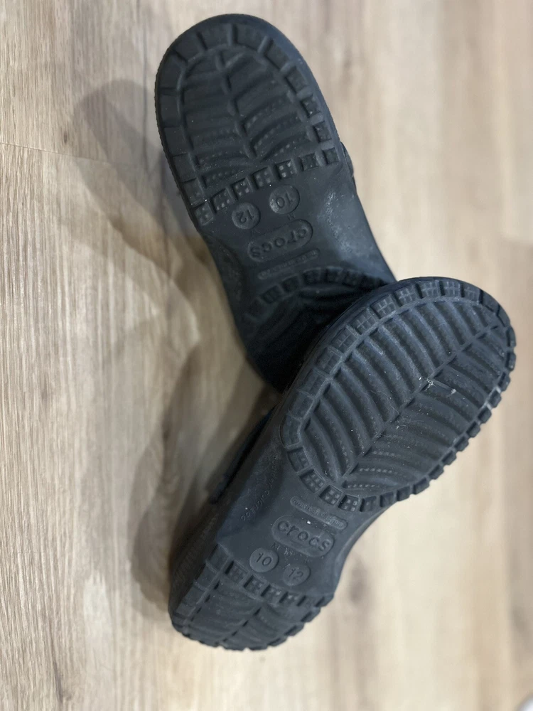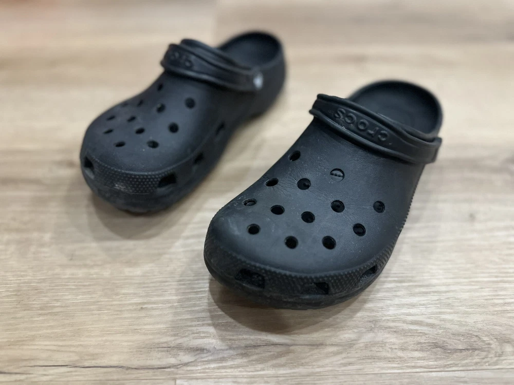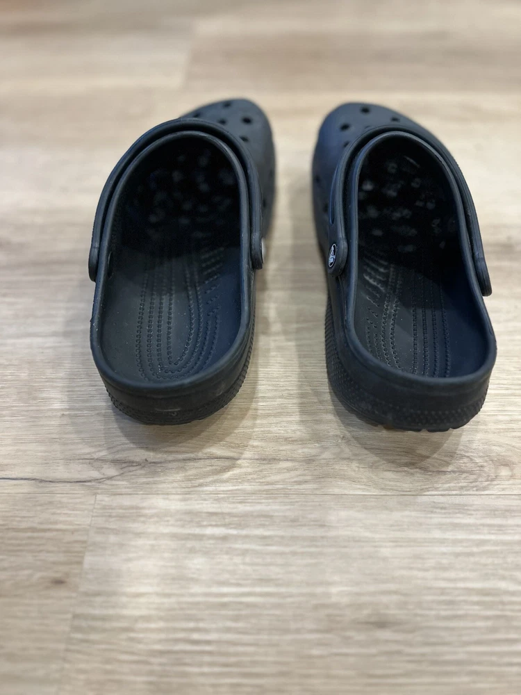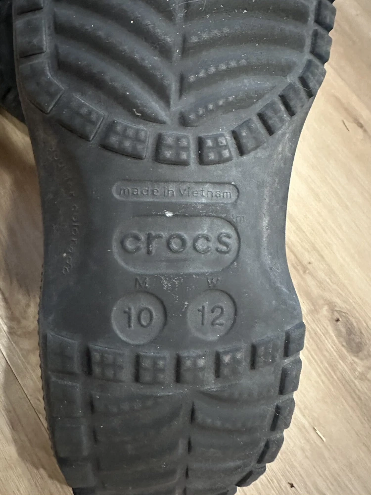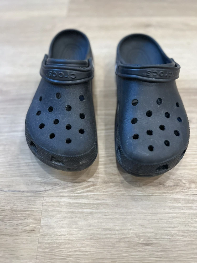 Get your hands on the Crocs Classic Unisex Classic Clogs in black, size M10W12. These clogs are perfect for travel, activewear, casual wear, and workwear. The slip-on style and round toe shape make them easy to wear and comfortable. The rubber upper material, lining material, and outsole material ensure durability and support. The clogs feature a cushioned, breathable, and comfortable design with a flat heel style and low top shoe shaft style. The strap and logo accents add a touch of style to these classic clogs. They are perfect for walking, beach activities, and driving. The Crocs Classic Unisex Classic Clogs are a must-have for anyone looking for comfort and style.
