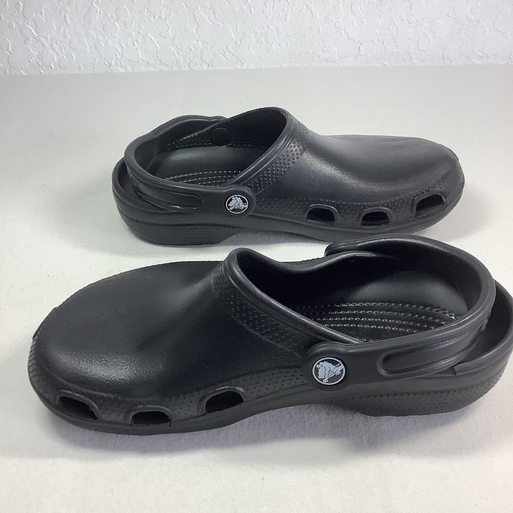 Type: Casual Upper Material: Synthetic Brand: Crocs Closure: Slip On Season: Fall, Spring, Summer Toe Shape: Round Toe Department: Men US Shoe Size: 5 Color: Black Model: Crocs Crocband Style: Clog Shoe Width: Standard Customized: No Vintage: No Pattern: Solid Insole Material: Rubber Occasion: Casual, Travel, Workwear Outsole Material: Rubber