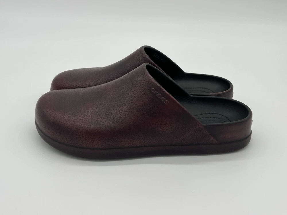 Crocs Dylan Men's Size 11 Burnished Clogs Dark Cherry Comfort Loafer Slides. Shoes are in used condition and have signs of wear but shoes are still in great condition. Upper material is in excellent condition and very clean , inside is clean and the soles are in great condition. Nice comfortable shoes for casual wear. Condition is pre-owned. Shipped with usps priority mail. Sold as pictures. Thank you! Feel free to message me for any questions. Thank you