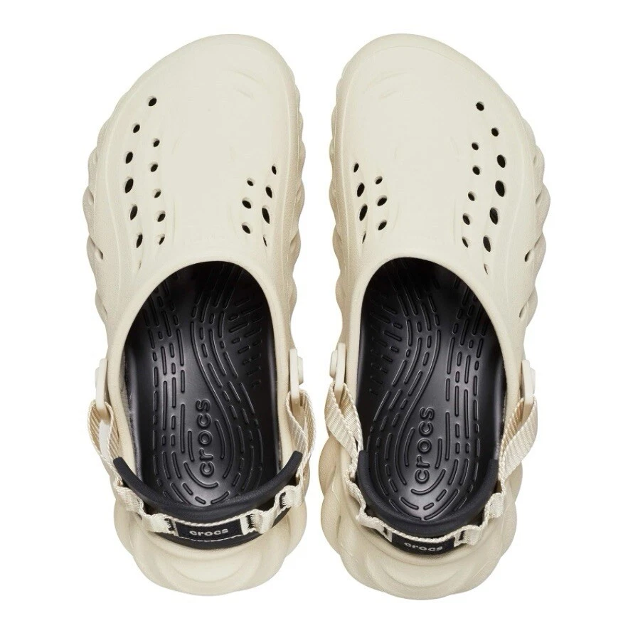 Crocs Echo Bone Beige / Black Clog Shoes Comfort Slides Womens Size 8 - Mens 6