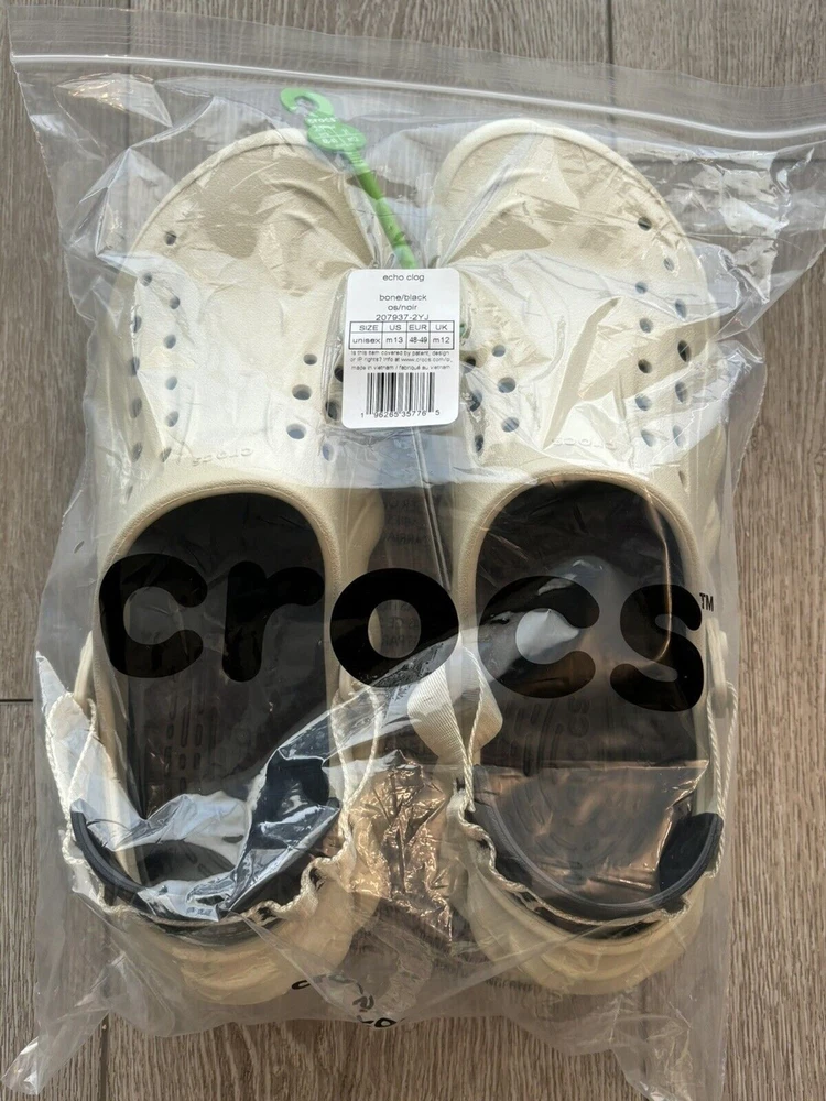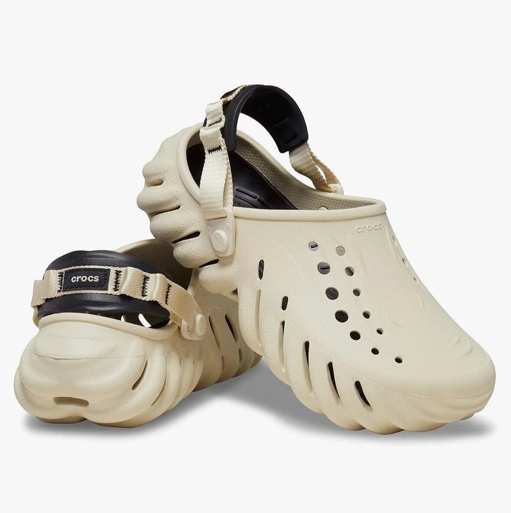 Crocs Echo Clog Bone / Black 207937-2YJ Mens Size 13 Utility Clogs New