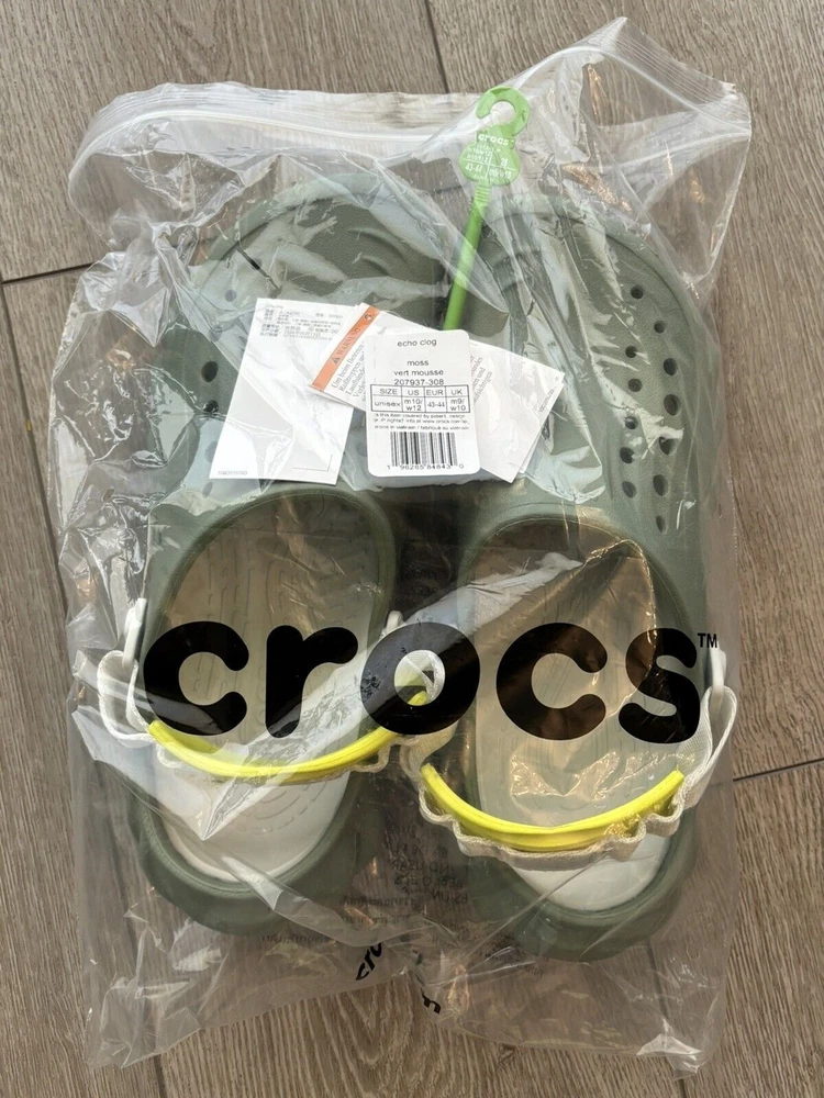 Style Code:207937-308Country/Region of Manufacture:ChinaPattern:SolidModel:Crocs Echo Clogs AloeOutsole Material:SyntheticProduct Line:Crocs Echo Clogs AloeType:CasualFeatures:Adjustable Strap, Ankle Strap, Breathable, Comfort, Lightweight, Motion Control, Water Resistant, Fully molded Croslite upper and foundation, Water-friendly and buoyant, Ventilation ports, Heel pad on back strap for extra comfort, Dual density support with Croslite sole and LiteRide Footbed, Customizable with Jibbitz charms, Easy to clean, quick to dryEU Shoe Size:43Season:Fall, Spring, Summer, WinterStyle:Slip-OnUK Shoe Size:9Theme:Going Out, Outdoor, Casual, EchoDepartment:MenCustomized:NoVintage:NoShoe Width:StandardManufacturer Color:Moss GreenUpper Material:SyntheticMPN:207937-308US Shoe Size:10Accents:LogoOccasion:Activewear, Casual, TravelCharacter:Echo ClogsClosure:Slip OnColor:GreenBrand:CROCSLining Material:SyntheticInsole Material:Synthetic