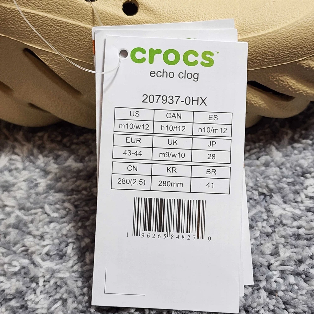 Crocs Echo Clogs Unisex Size Men's 10 Women's 12 Sesame Tan Beige 207937-0HX NEW
