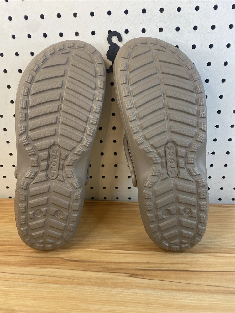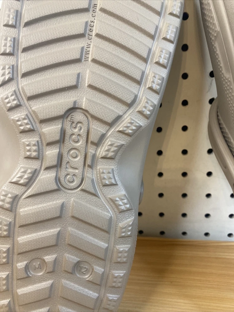 Introducing a stylish and comfortable slip-on clog shoe from Crocs. With a round toe shape and standard shoe width, this shoe is perfect for women who want to stay comfortable during casual and activewear occasions. The outsole is made of Croslite material, while the upper faux fur material lining is perfect for those cooler fall, summer, and spring days. Featuring a non-slip, lined, and comfortable interior, this shoe is perfect for those who want to stay cozy and stylish. Additionally, it comes with a strap and logo accents, making it perfect for beach and lounging around home themes. Get your hands on this Crocs Crocband model today, perfect for all your casual needs. item looks to be in good condition, item inspected to the best of our abilities item is new without tags size men 11 women's 12