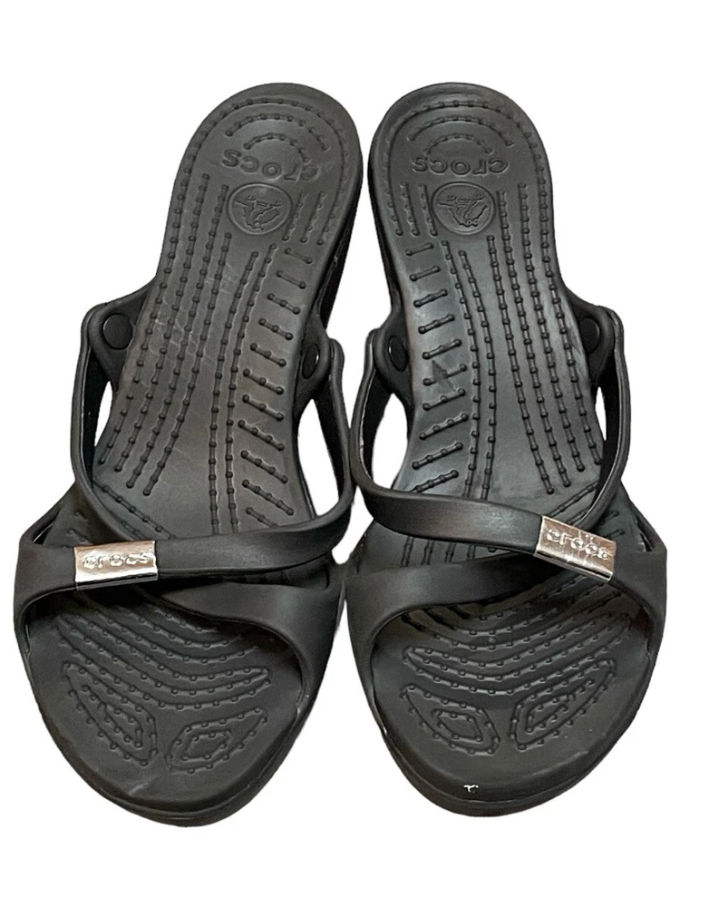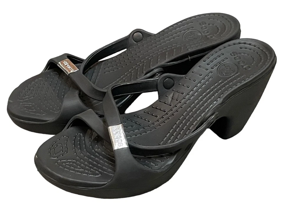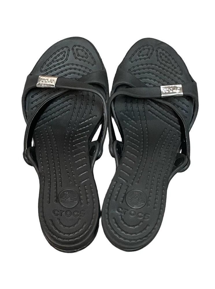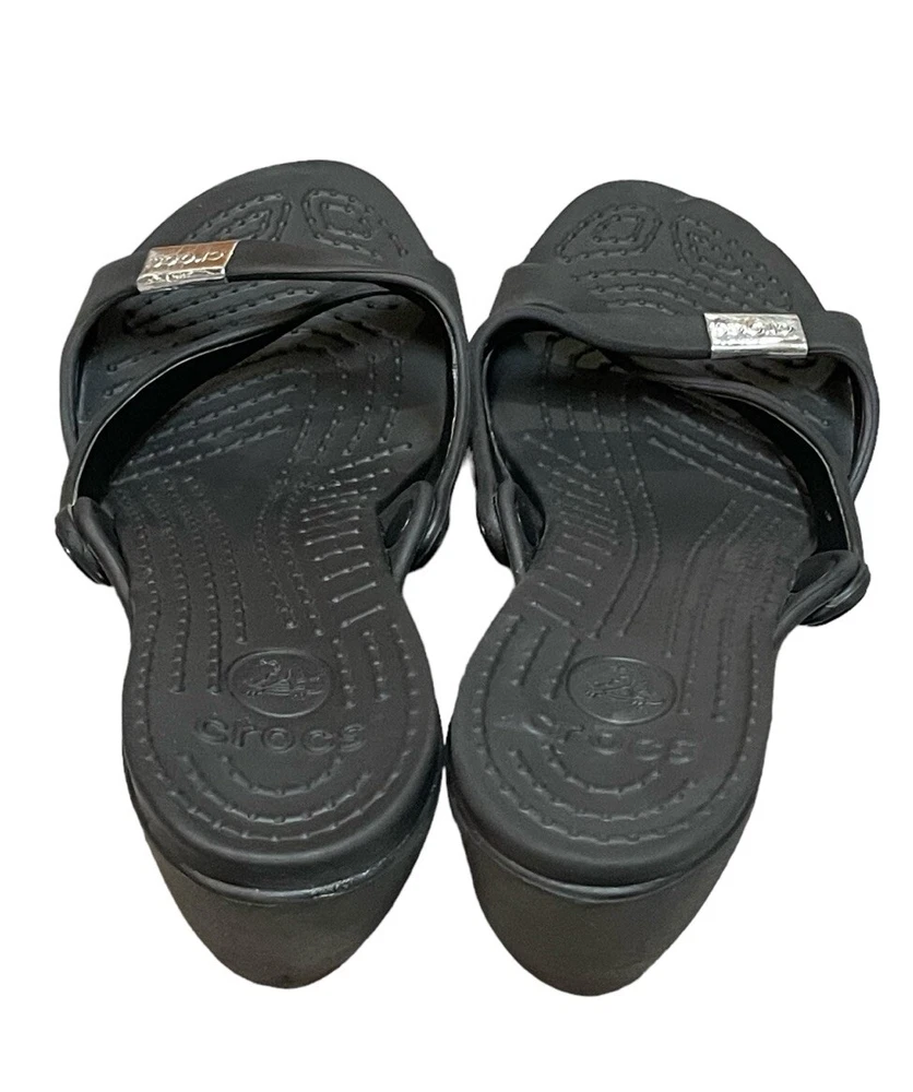 Crocs Heels Cyprus Strappy Open Toe Comfort Casual Black Women’s 10W