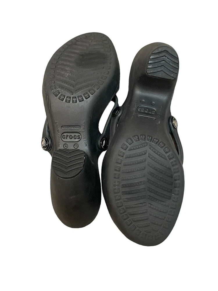 Crocs Women’s 10 W Heels Cyprus Strappy Open Toe Comfort Casual Black.