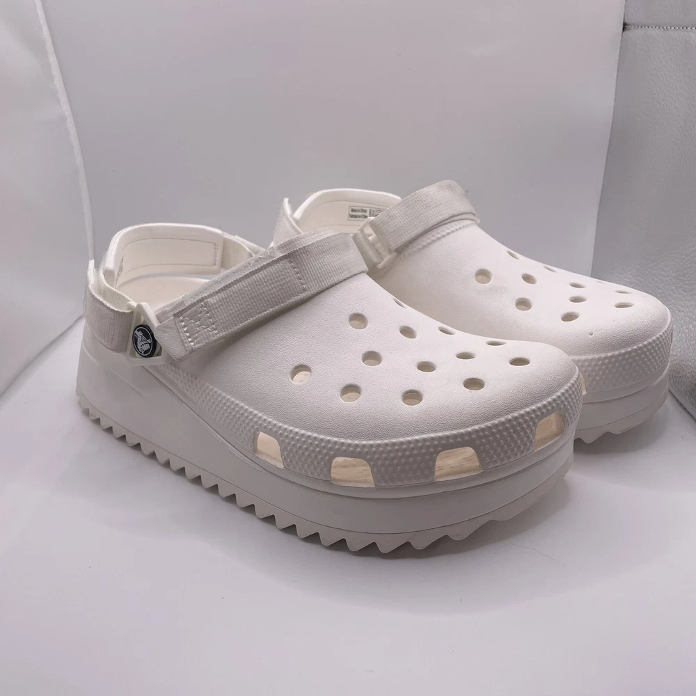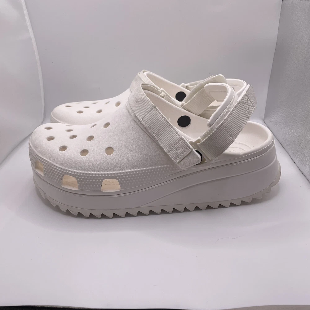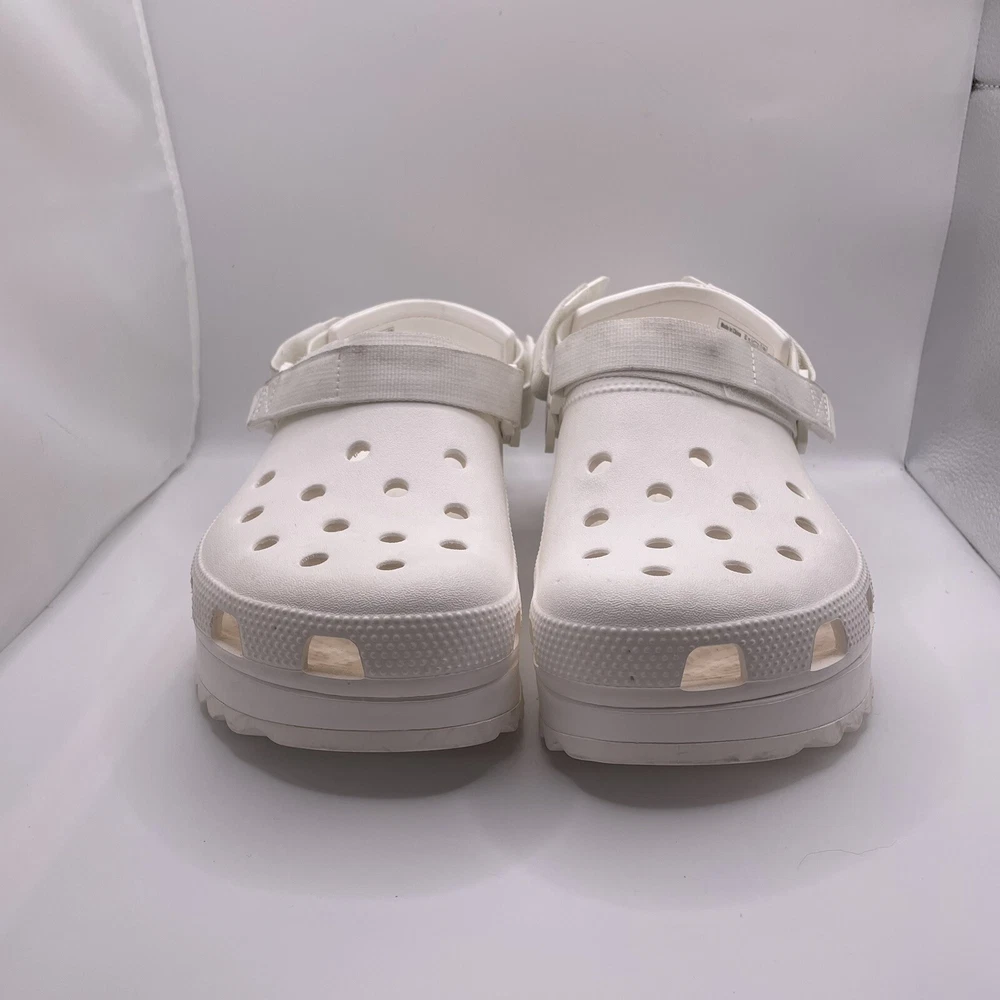 Crocs Hiker Platform Clogs Shoes 8M/10W White Rubber Strap Crocodile Logo 206772