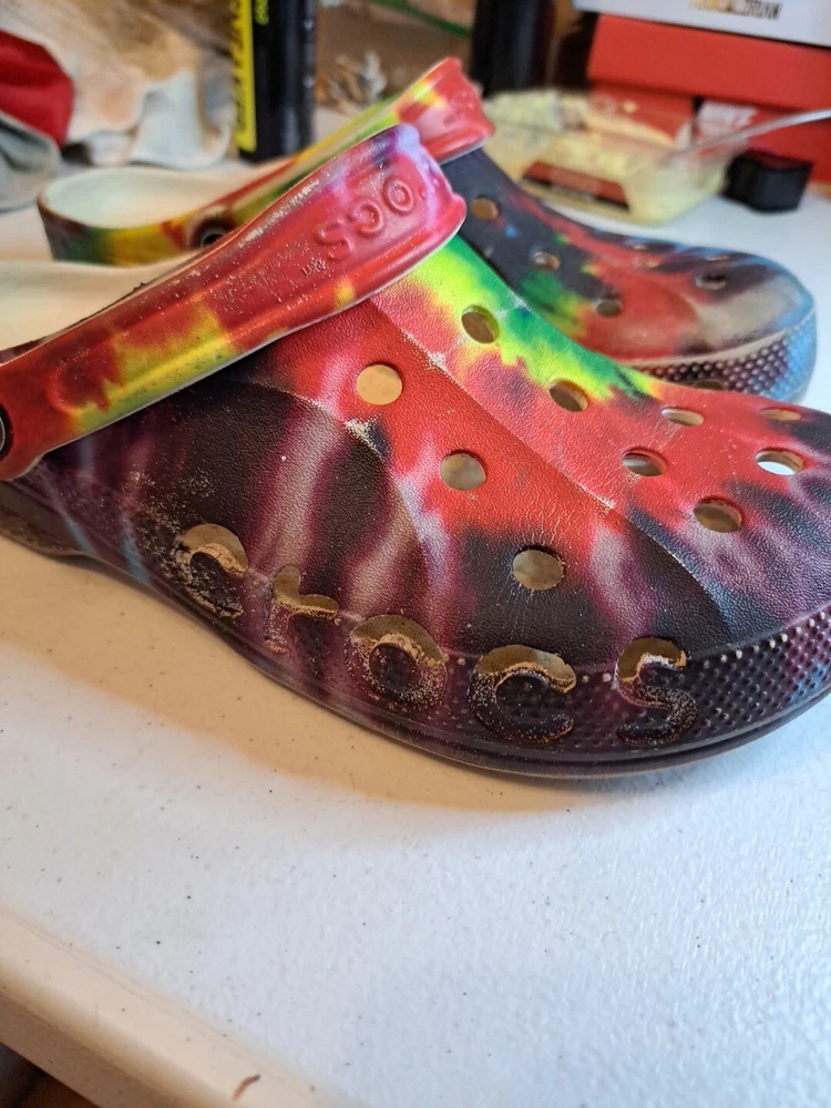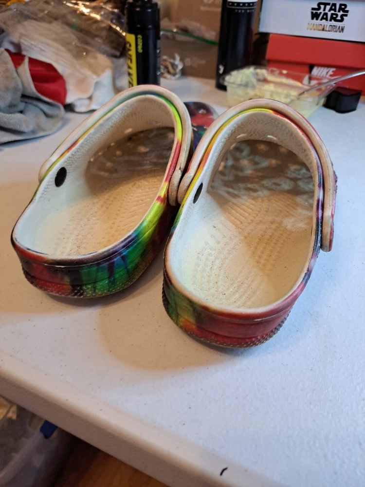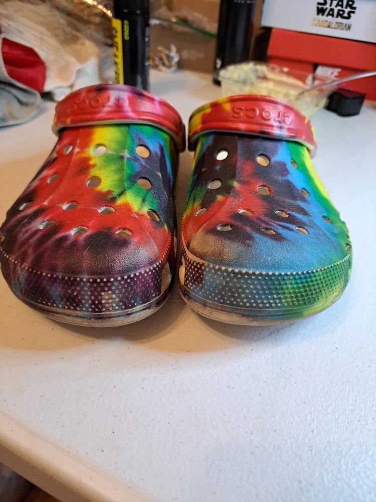 Crocs Junior 2 All Terrain Clogs Tie Dyed Lightweight Comfort Shoes sz7 M 9W