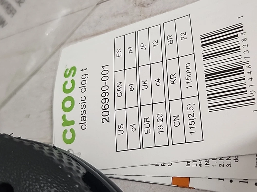 Crocs Kid's Classic Clog Slip On Sandals Black Infant Toddler Size C4 New tags Condition: new with tags