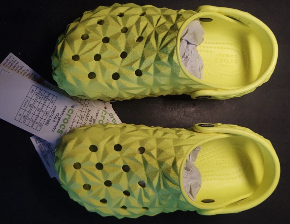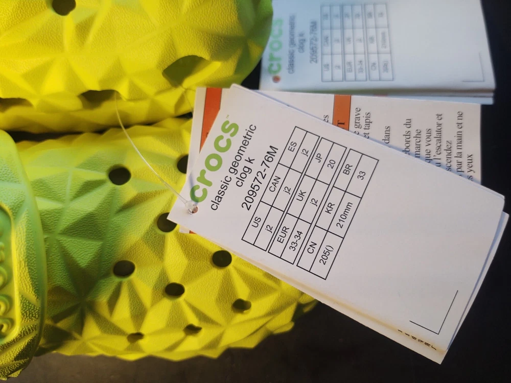 Crocs Kid's Classic Geometric Clog yellow Size j2 Please see pictures for reference! Feel Free to Communicate, I answer all messages within 24 hours Thank you for shopping my Colorado Small Business! Kids' Classic Geometric Clog It’s everything you love about the Crocs Classic Clog in Slide form, and this version features a geometric molded design. Plus, each slide has room for 13 charms so you can load up your sandals with tons of personality. Original Croslite™ foam cushion will keep you comfortably supported as the unique design and finish boost your style. Kids' Classic Geometric Clog Details: • Geometric molded design • Incredibly light and fun to wear • Easy to clean and quick to dry • Croslite™ foam footbeds for lasting comfort • Customizable with Jibbitz™ charms • Iconic Crocs Comfort™: Lightweight. Flexible. 360-degree comfort.