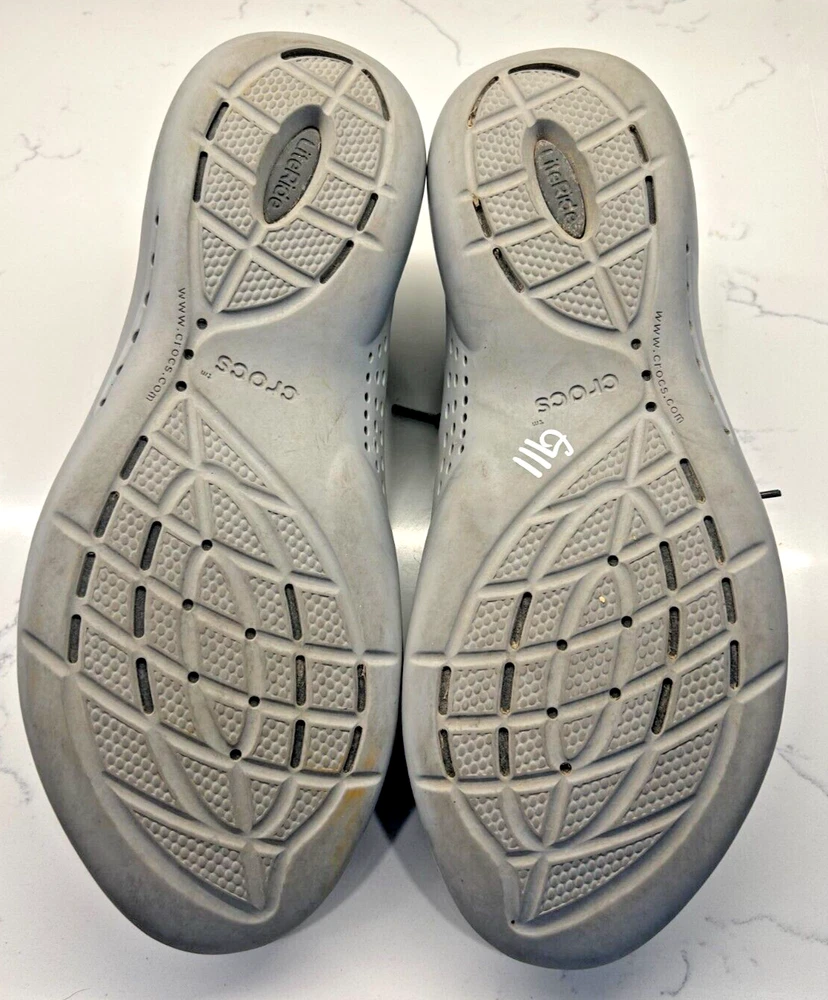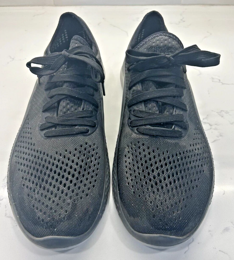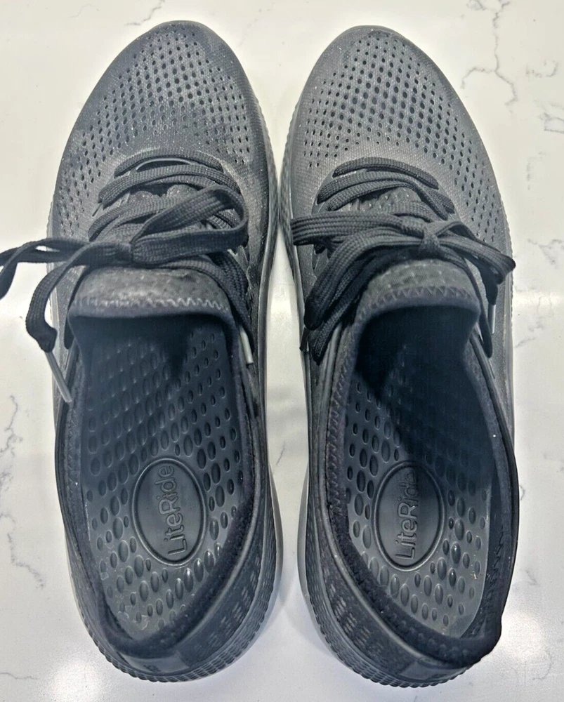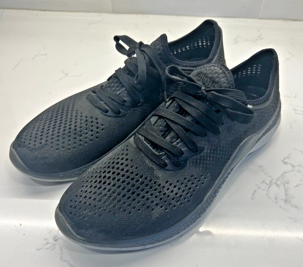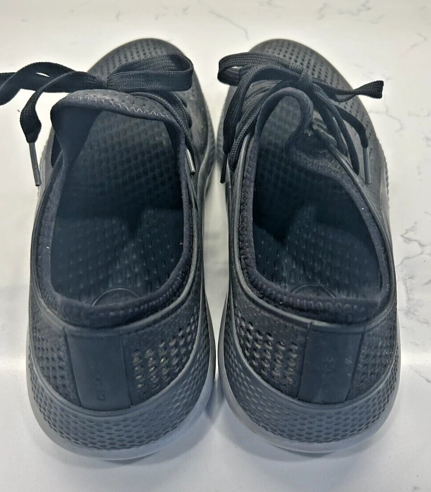 Experience the perfect blend of comfort and style with the Crocs LiteRide 360 Pacer in sleek black and slate grey. Designed for the modern man, these size 13 sneakers offer a versatile look that transitions smoothly from a casual workday to an evening out with friends. The durable rubber upper ensures longevity and is complemented by the shoe's elegant grey hue, making it a staple in any wardrobe.The LiteRide 360 Pacer is not just about aesthetics; it's built for all-day comfort with its unique Lace Up closure that provides a secure and adjustable fit. The sneaker's model number 206715 guarantees the quality and craftsmanship associated with the Crocs brand. Whether you're on your feet all day or enjoying a laid-back weekend, these shoes are engineered to keep your feet supported and stylish.