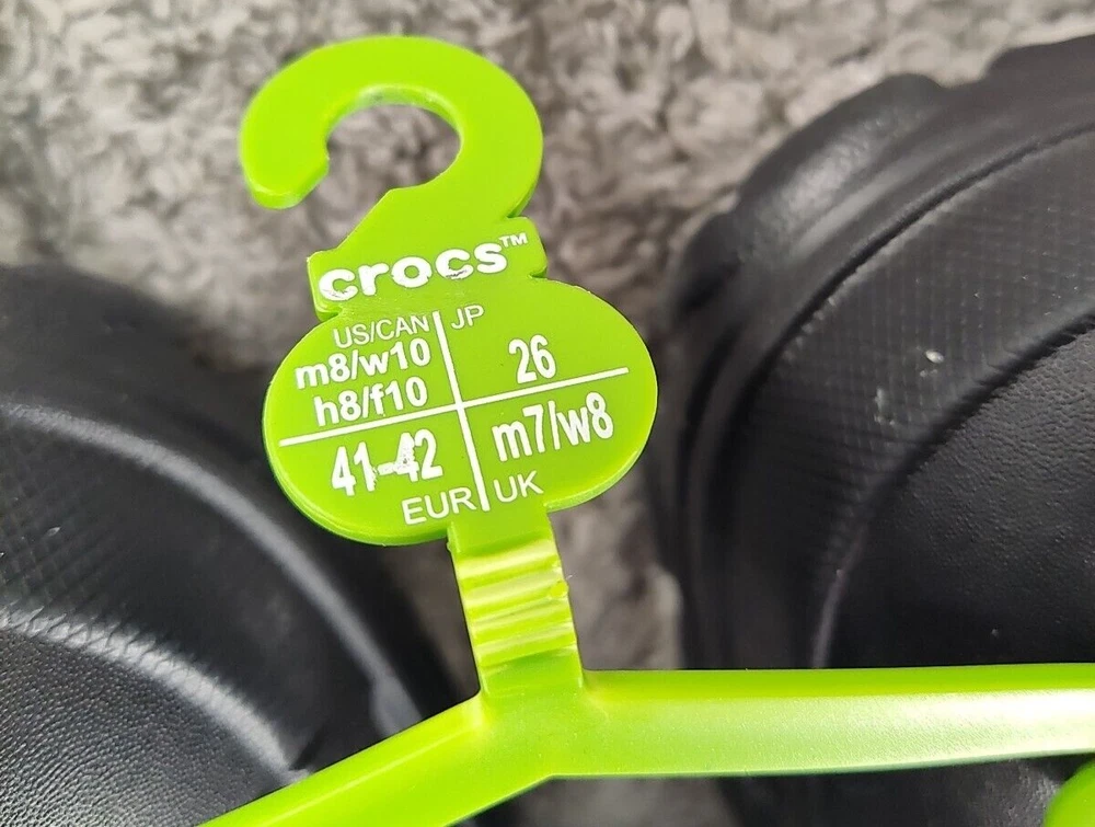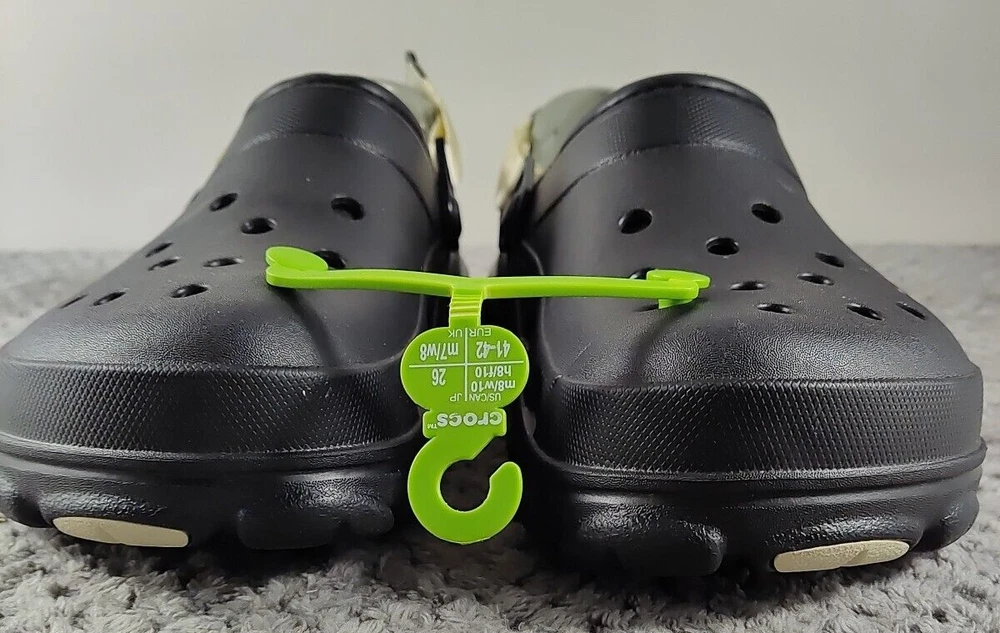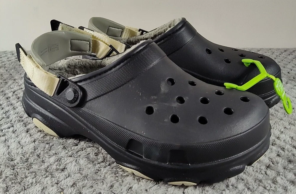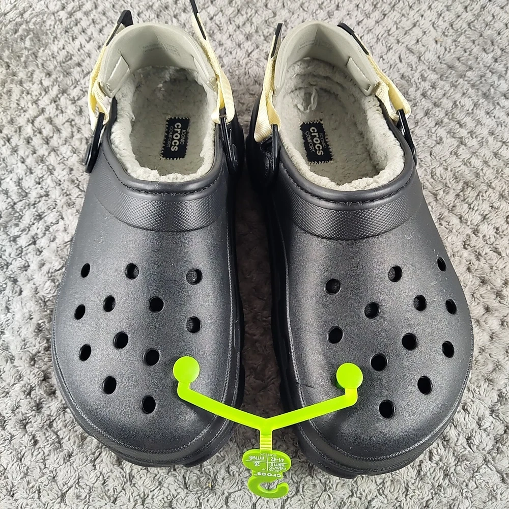 Crocs All-Terrain Lined Clogs for Men - Black - 8M Take your walking comfort off-road! The Crocs™ All-Terrain Lined Clogs for Men are specifically built with rugged lug outsoles and aggressive tread patterns, so you can enjoy sure-footed traction wherever your outdoor adventure takes you. Plus, these outsoles offer comforting foot support, and they deliver the Iconic Crocs Comfort – a lightweight, flexible, soft-as-air feel you've come to know and love. Up top, Croslite™ foam uppers offer foot protection and a classic Crocs look. Inside, synthetic fleece linings offer a soft comfort that's perfect for socks or bare feet. Ventilation ports encourage breathability, cooling airflow, and they drain water if that's ever needed. Easily adjustable heel straps create a customizable and snug fit. These men's Crocs are easy to clean and quick to dry. Imported. Manufacturer style #: 207936. Iconic Crocs Comfort lightweight, flexible, soft-as-air feel Croslite foam uppers Synthetic fleece linings Ventilation ports keep feet cool Adjustable heel straps Outsoles feature lug outsoles and aggressive tread