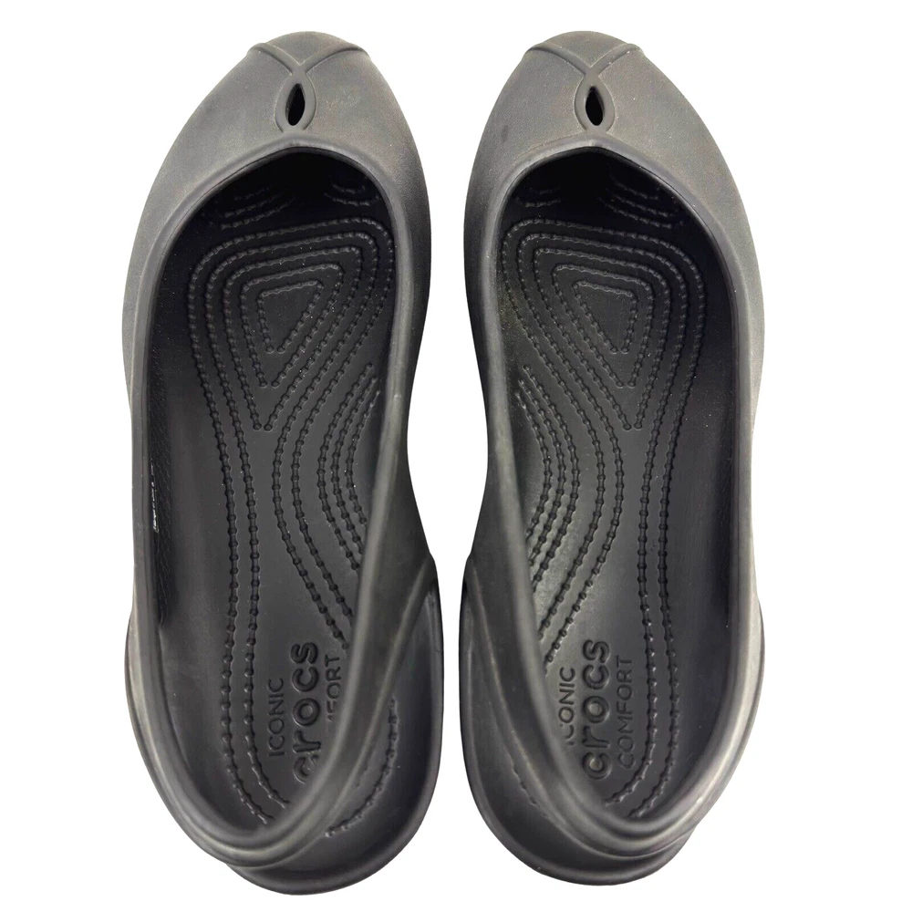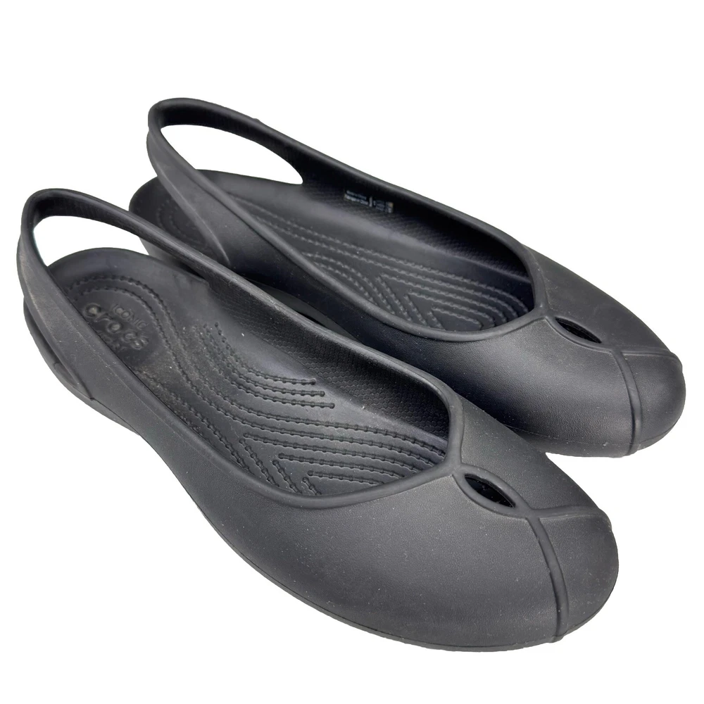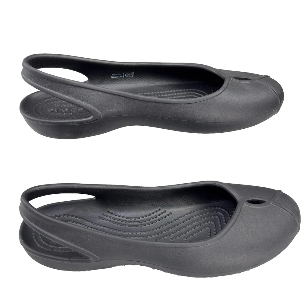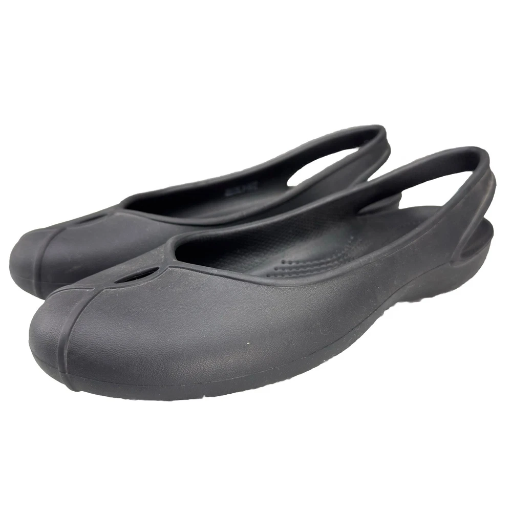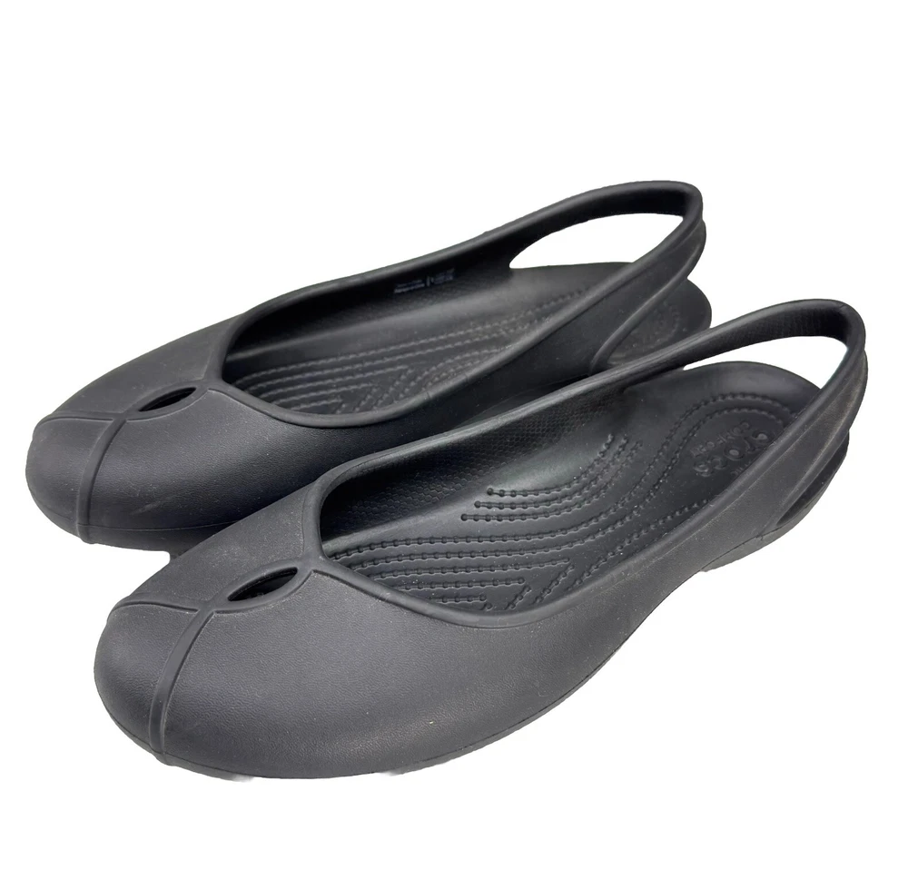 The Crocs Olivia II Women's Size 10 Black Flat is a versatile and comfortable option for women on the go. Featuring a slip-on style with a sling-back design, these ballet flats in solid black are perfect for travel, casual outings, or even business settings. The iconic comfort of Crocs is evident in the rubber outsole and upper material, making them suitable for all seasons. The Olivia II model is a stylish choice that combines practicality with a touch of elegance for everyday wear. Very good pre-owned condition with no issues to note. ⭐Smoke and pet-free ⭐Examine photos carefully as they are part of the description. ⭐Compare measurements with a similar piece of clothing you own that fits you well. ⭐If you need more measurements or images, do not hesitate to contact us. ⭐Ships quickly - same or next business day! Returns policy: The most common reason for returns is due to fit. This is the reason we provide careful measurements. Tag size is often misleading, particularly on vintage items. Please use the measurements provided and compare to a similar item you own that fits you well to avoid returns . If you need more measurements or images, do not hesitate to contact us. If you receive your item and it doesn't fit, or is not what you wanted, all we ask is that you return it within 30 days, in the condition we sent it to you in. Please be aware that buyer pays for return shipping. If the item is new with tags, please do not wash or remove the tags. Store tags must be attached for a return. If they are not attached when returned, this will result in less than a full refund. Thank You! 😊