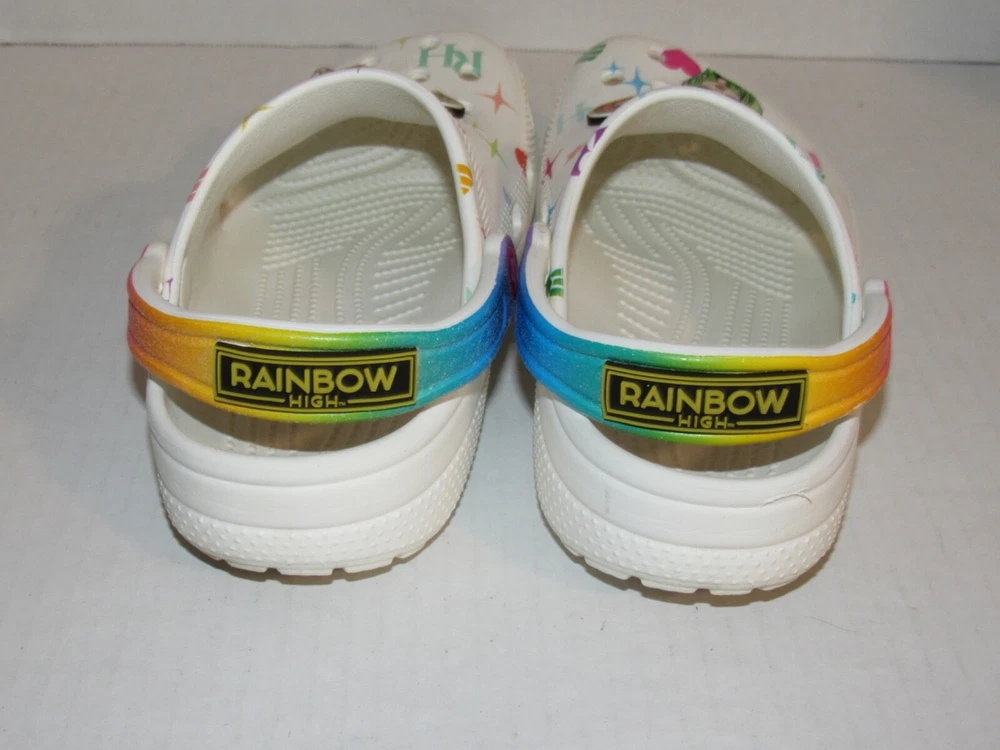Crocs Rainbow High White Classic Clog Shoes 208117-90H. Youth Junior Girls Size 6. In used condition. From smoke free home.