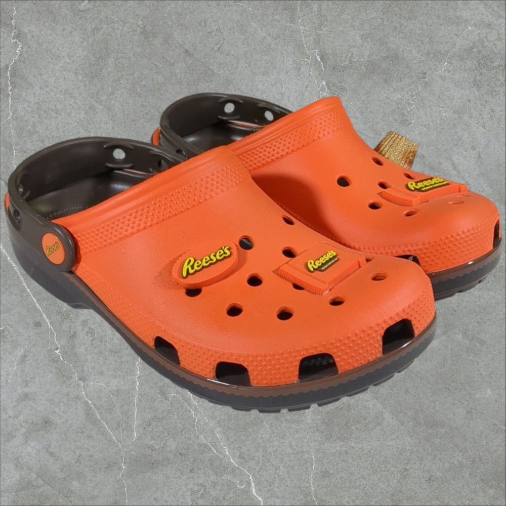 Get ready for a fun and exciting adventure with these Crocs Reeses Peanut Butter Cup Classic Clogs! These limited edition sandals are perfect for any occasion, whether it's a day at the beach, a school day, or a Halloween party. The clogs feature a closed toe and slip-on closure for easy wear, and they come in a vibrant orange color with a glow-in-the-dark design that will make you stand out from the crowd. The Crocs Reeses Peanut Butter Cup Classic Clogs are made of high-quality rubber and have a flat heel style, making them comfortable and breathable for all-day wear. They also feature a cushioned insole and a lightweight design, ensuring that your feet will stay comfortable and supported. The sandals are part of the Crocs Reeses product line and come with a logo accent, making them a stylish addition to your wardrobe. Order now and get ready to experience the fun and excitement of these classic clogs! If you like this item and would like to see more like it, click the link below to check out our store. 523 Supplier LLC | eBay Store Return Policy : Customer satisfaction is important to us. Good communication is crucial for eBay sales. Before leaving feedback, please notify 523 Supplier LLC about any concerns using eBay messaging. Items must be returned in original condition, with tags if applicable. Buyers are responsible for return postage . If the wrong item was shipped, we will refund the entire amount including return shipping.