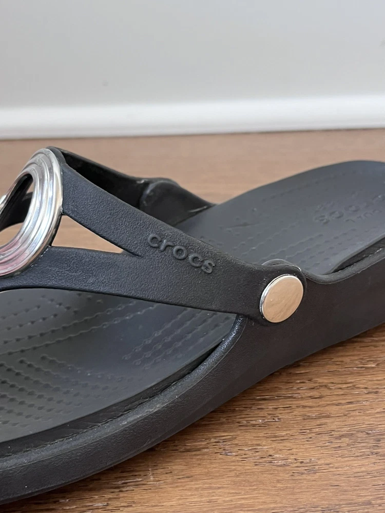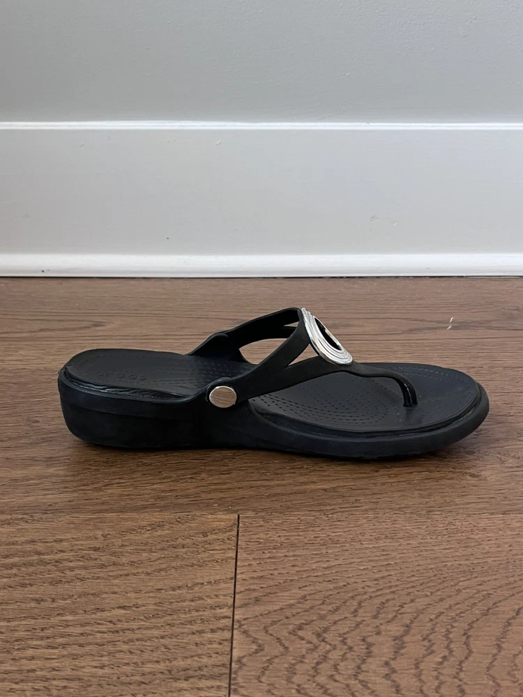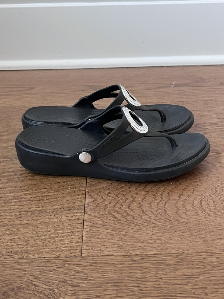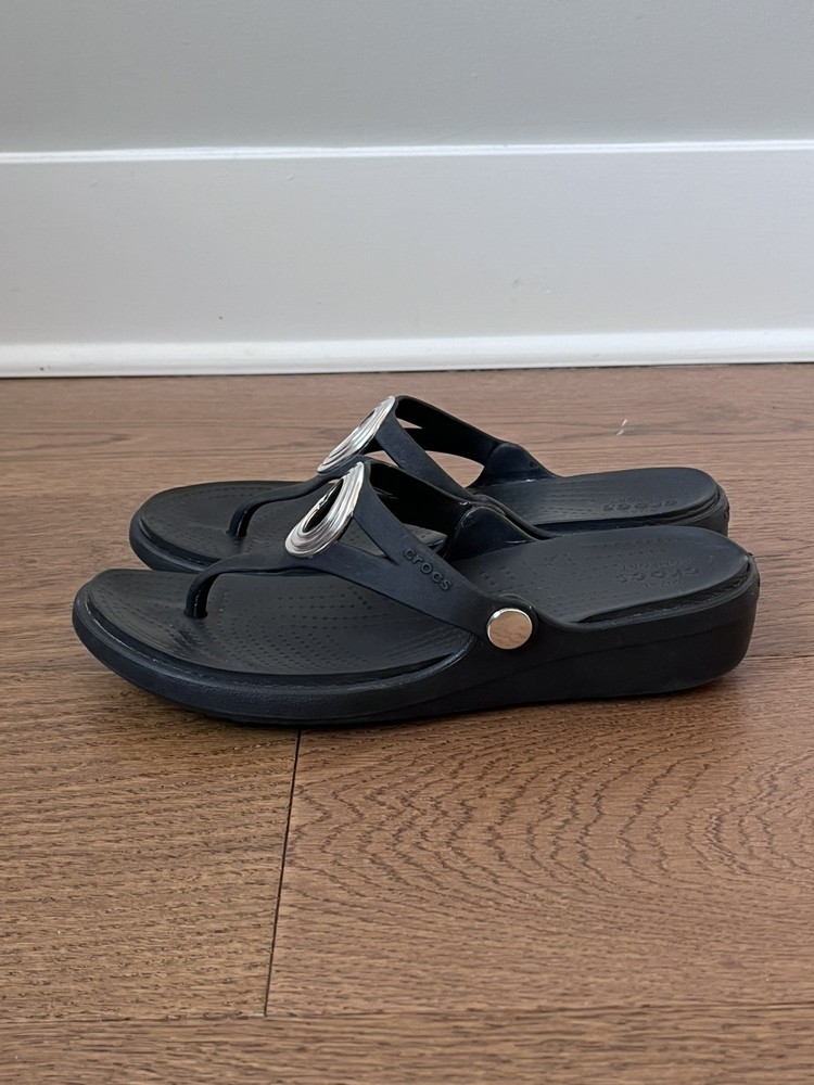 Crocs Sanrah Sandals Womens Size 8 Circle Comfort FlipFlops Thong Slip On Wedge