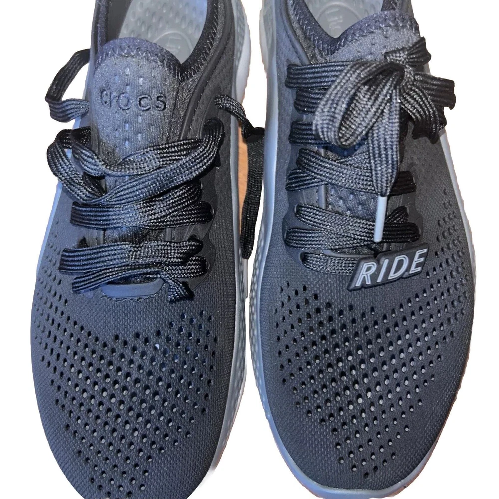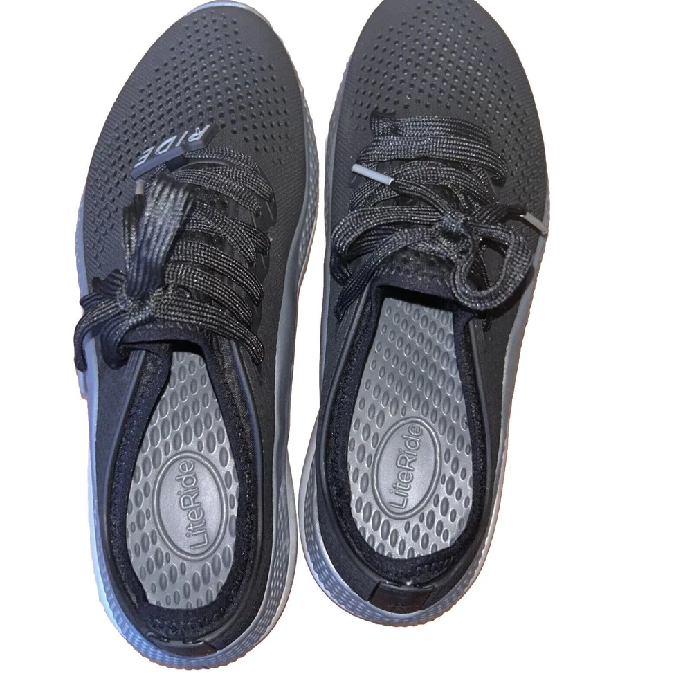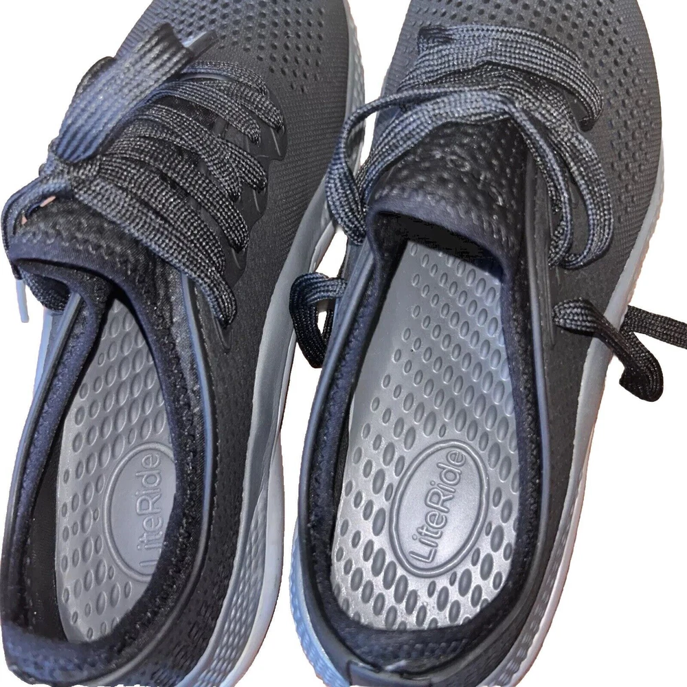 Crocs Shoes LiteRide Pacer Sneakers Size M8 Black Grey Comfort 206715. Condition is Pre-owned. Shipped with USPS Ground Advantage.