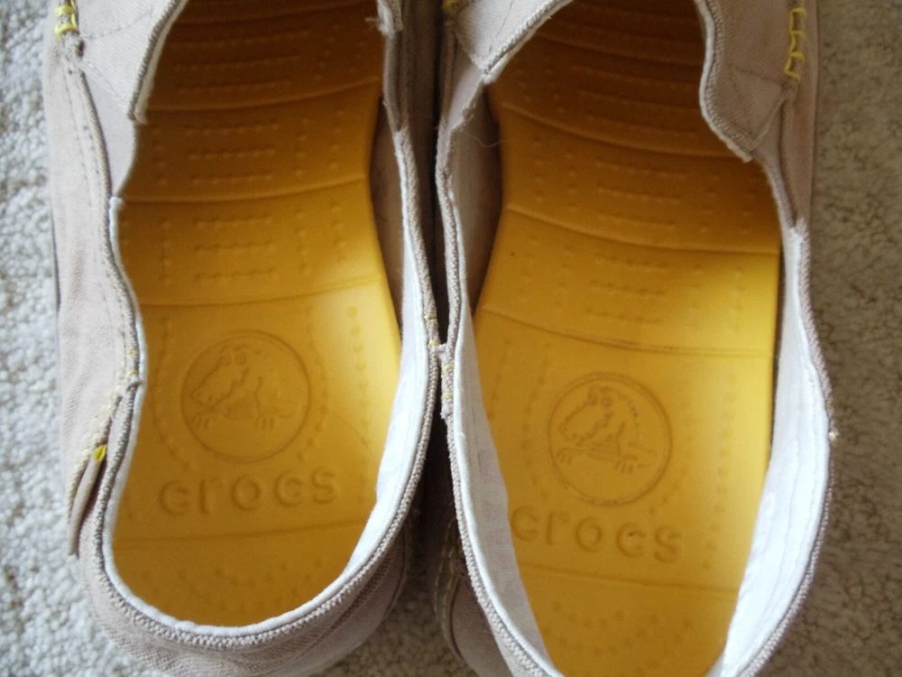 Occasion:Casual, TravelColor:Tan/ TaupeModel:Crocs 14773Brand:CrocsFabric Type:CanvasInsole Material:RubberCountry/Region of Manufacture:VietnamPattern:SolidUS Shoe Size:12Style:LoaferClosure:Slip OnType:CasualShoe Width:MDepartment:MenFeatures:Breathable, Comfort, StretchSeason:Fall, Spring, SummerTheme:ClassicOutsole Material:RubberToe Shape:Round ToeSeller Notes:“Very nice and come as pictured The bottom soles show some minor wear/ soiling”Upper Material:CanvasLining Material:Canvas
