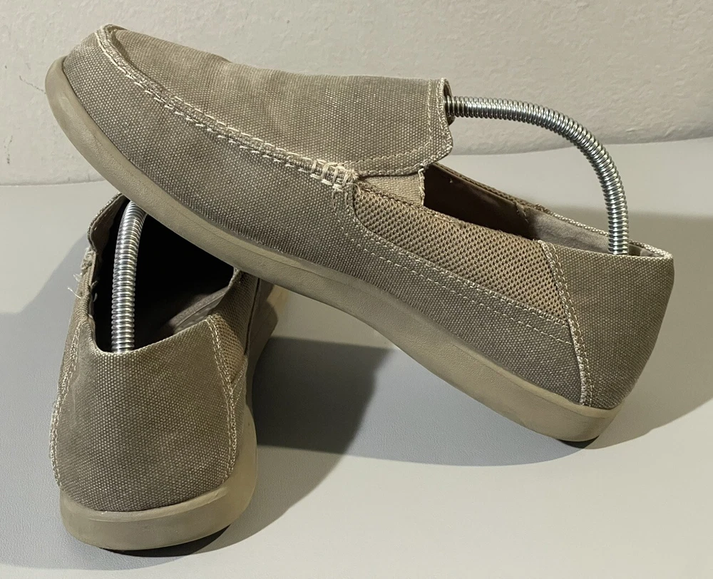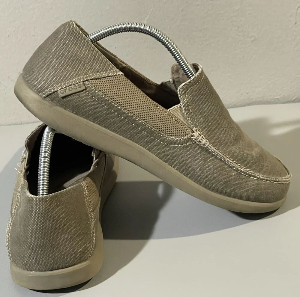 The Crocs Shoes Men's Size 14 Slip-On Canvas Comfort Loafer Shoe is designed for casual wear and offers a comfortable fit. The shoe features a solid beige canvas upper with a round toe shape and slip-on closure for easy wearing. Ideal for travel, activewear, or everyday casual use, this Crocs shoe is crafted with a fabric lining, rubber insole, and a comfortable design that is suitable for summer, fall, and spring seasons. Perfect for men looking for a versatile and easy-to-wear shoe option.