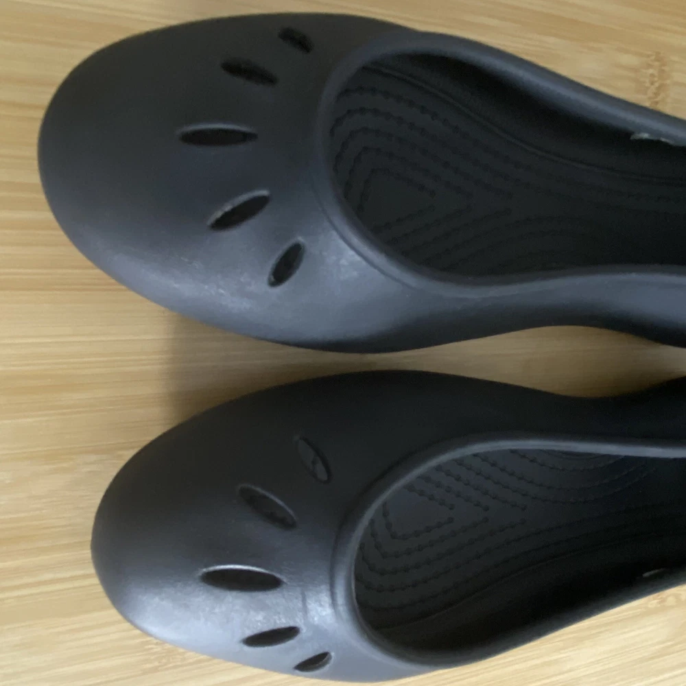Step out in style and comfort with these iconic Crocs flats in classic black. Designed for women, they come in size 8 and feature a slip-on closure for easy wear. The closed-toe shape and plastic upper material make them perfect for all seasons - winter, summer, fall, and spring. These flats are suitable for a range of occasions, from travel and activewear to casual and workwear. With their comfortable features, including a flat sole and soft footbed, you can wear them all day long without any discomfort. So, update your shoe collection with these versatile and stylish Crocs flats today.