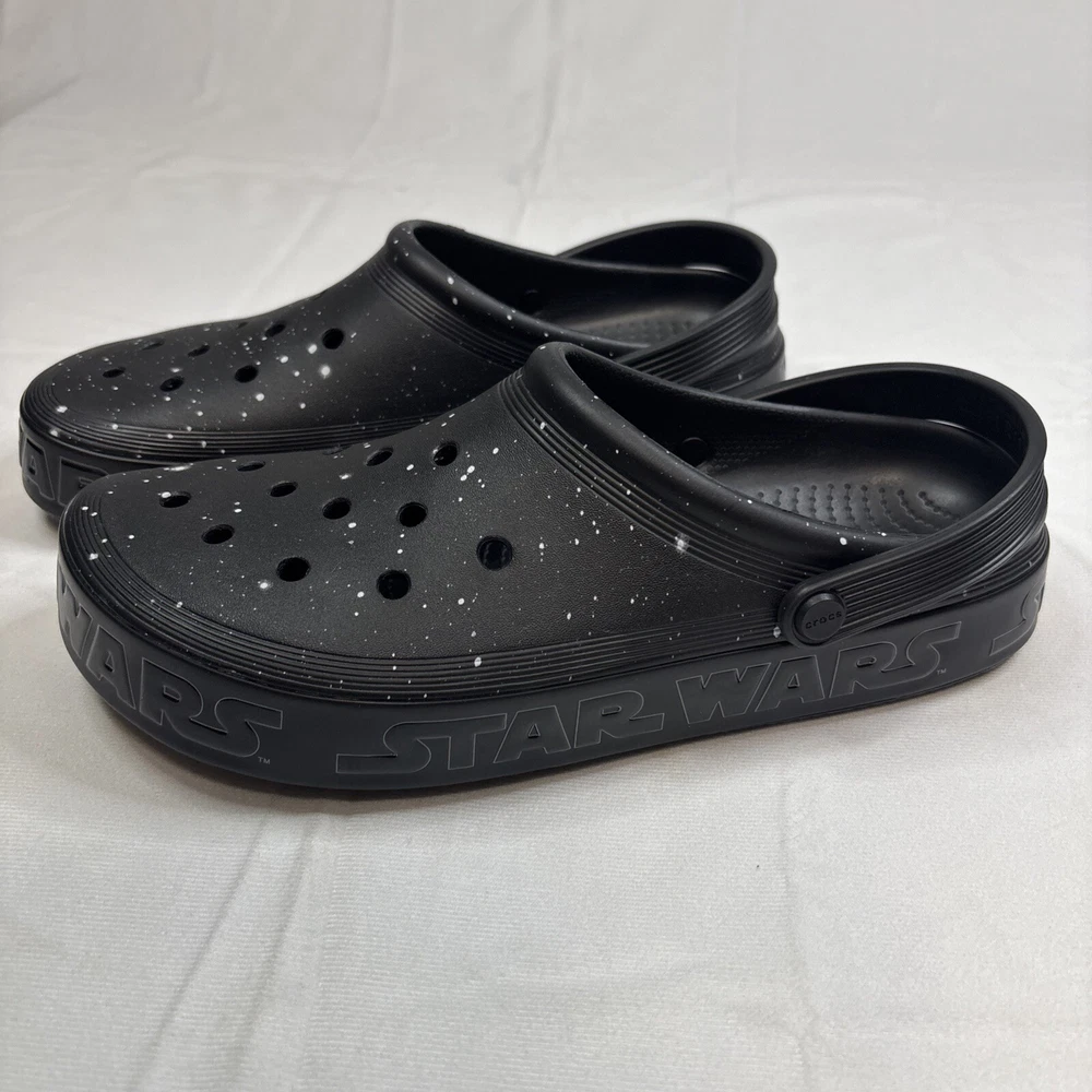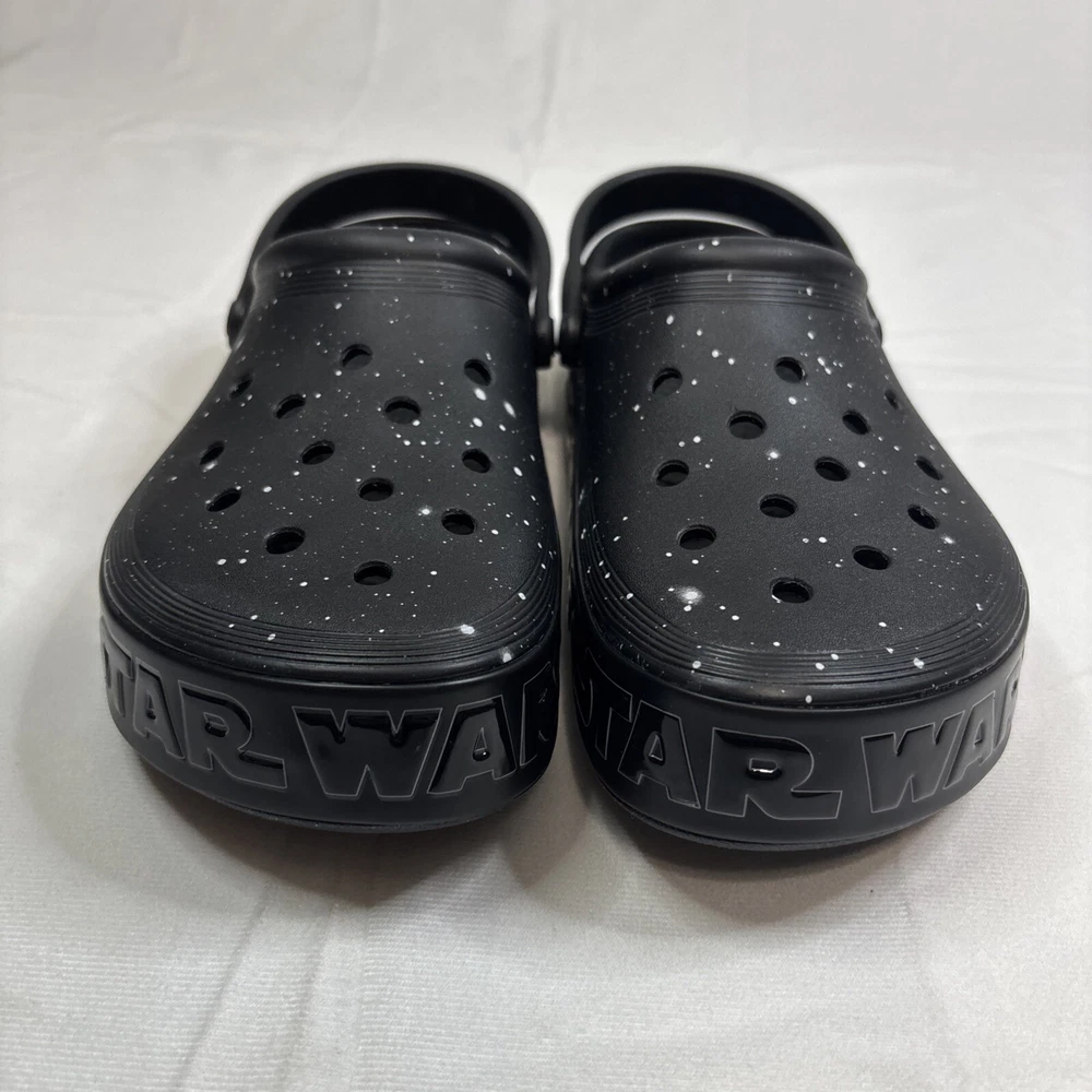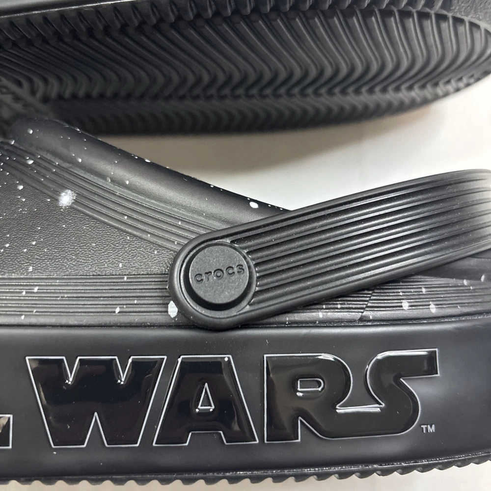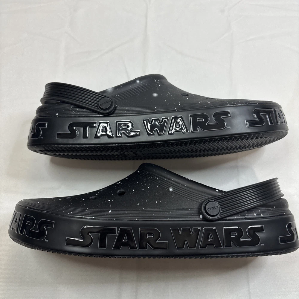 Style:ClogUPC:0196265673629Model:Crocs Star Wars Off Court ClogShoe Width:StandardOccasion:Casual, TravelSeason:Fall, Spring, Summer, WinterColor:BlackBrand:CrocsUS Shoe Size:12Closure:Slip OnDepartment:MenTheme:Cartoon, TV & Movie Characters, Movie, StarsAccents:LogoCustomized:NoUpper Material:PolyethyleneFeatures:Ankle Strap, Breathable, Comfort, Vegan, Waterproof, Jibbitz Charms, Light Up, Glitter treatment that mimics looking into a galaxy far, far away, Collection of Star Wars spaceship Jibbitz™ charms, midsole with Star Wars logogtin13:0196265673629Type:CasualVintage:NoPattern:Star Wars