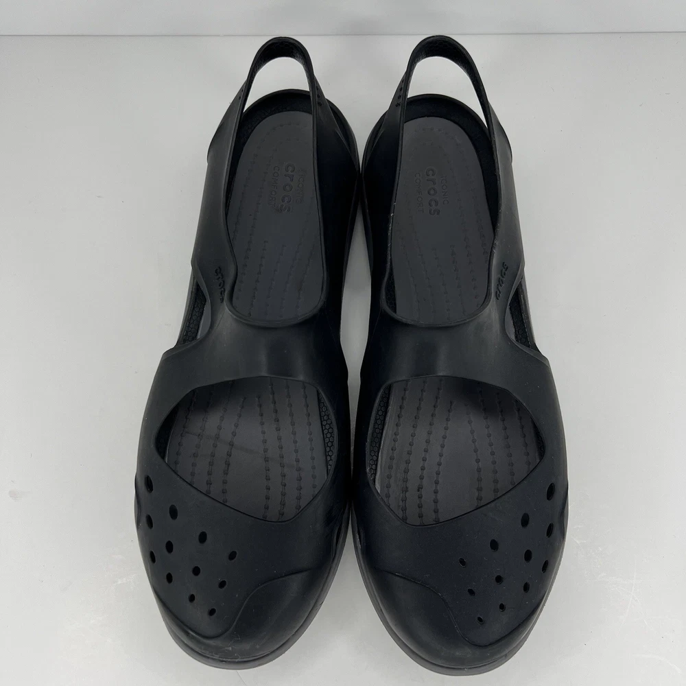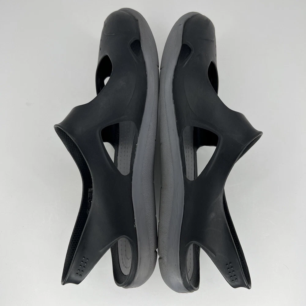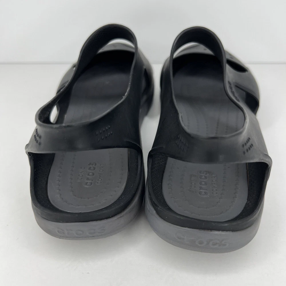 These Crocs Swiftwater Wave sandals are the perfect addition to your shoe collection. Slip them on for any occasion, whether it be travel, activewear, or casual wear. The flat heel height and cushioned insole make them comfortable for all-day wear, while the breathable and waterproof features ensure your feet stay cool and dry. These sandals come in black with a solid pattern and feature the Crocs logo as an accent. The rubber outsole and synthetic upper and lining materials make them durable and easy to clean. The Swiftwater Wave model is a classic favorite and perfect for any outdoor or beach-themed event. 100% CUSTOMER SATISFACTION IS OUR GOAL! Our items are always carefully examined for condition, measured if necessary, and photographed in a climate controlled and smoke-free environment. We make every attempt to accurately describe and clearly picture the items we have for sale. Please, ALWAYS view all of the photos. We value your business and our goal is your complete satisfaction. FAST SHIPPING All items are packaged with care and shipped out the same or next business day via USPS, FEDEX, or UPS with tracking numbers so you are always informed. RETURNS We offer a 30-day return policy. All items must be unused and unopened in the condition in which they were received, with original packaging, and all accessories included for return. REVIEWS - CUSTOMER SATISFACTION - COMMUNICATION We aim to make you happy. After you receive your shipment, please leave a positive review . If you have concerns or questions about your order, please contact us so we can resolve the issue. We will do our best to make you satisfied. THANK YOU FOR YOUR BUSINESS!