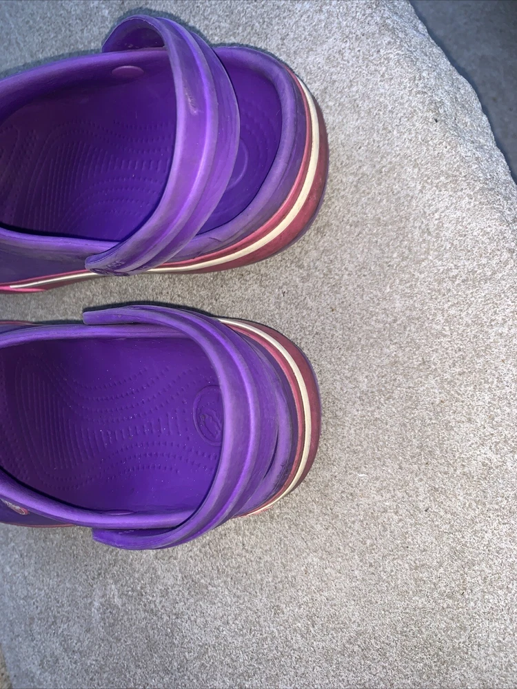 Crocs Toddler Kids Crocband II Clogs Blue White Red Size 12/13 C. Condition is Pre-owned. Shipped with USPS Ground Advantage.