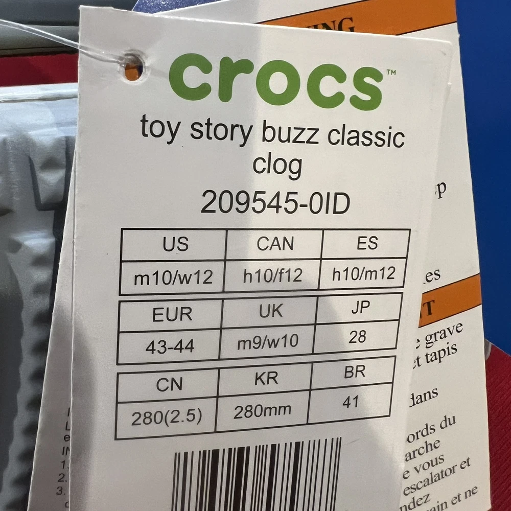 AU Shoe Size: 12 Customized: No Upper Material: Synthetic Features: Breathable, Comfort, Lightweight Model: 209545-01D EU Shoe Size: 46 Color: Multicolor Type: Casual Pattern: Solid Style: Clog Department: Men Closure: Slip On Outsole Material: Rubber Vintage: No Brand: Crocs Insole Material: Rubber US Shoe Size: 10 UK Shoe Size: 11 Lining Material: Synthetic Character: Buzz Lightyear