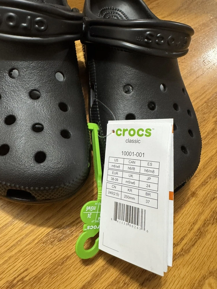 Crocs Unisex Classic Style 10001-001 , Clog Black, Men 6 Women 8, Brand New
