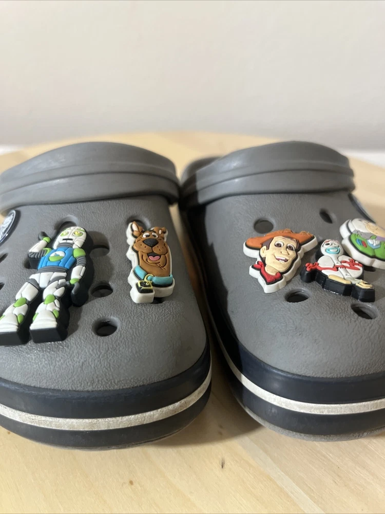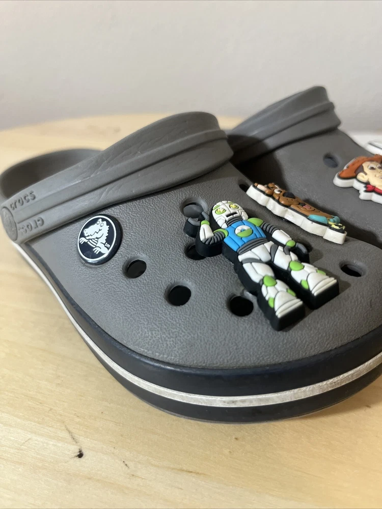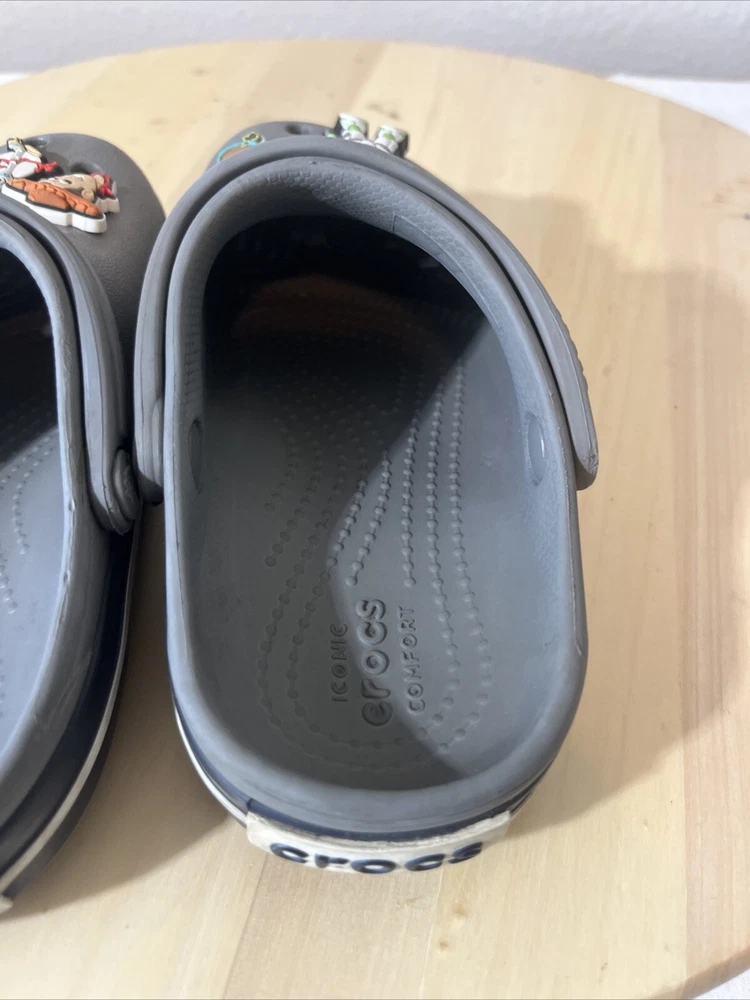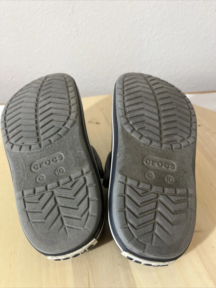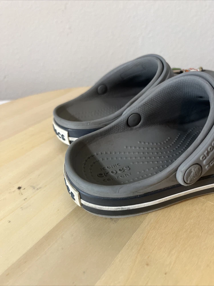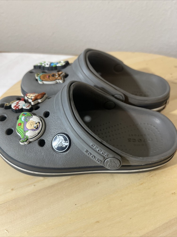 Elevate your child's summer footwear with these Crocs Unisex Classic Crocband Clogs in smoke gray. These slip-on clogs feature an almond toe shape and a low top shoe shaft style, making them a comfortable choice for casual occasions. The rubber upper material and lining material provide moderate cushioning, while the rubber outsole offers durability and traction. These Crocs Crocband Clogs come with Jibbitz Charms and are perfect for any child who loves the classic look. They are available in US 10 kids Get your hands on these athletic clogs, which are suitable for both boys and girls, and make them a part of your child's wardrobe today.