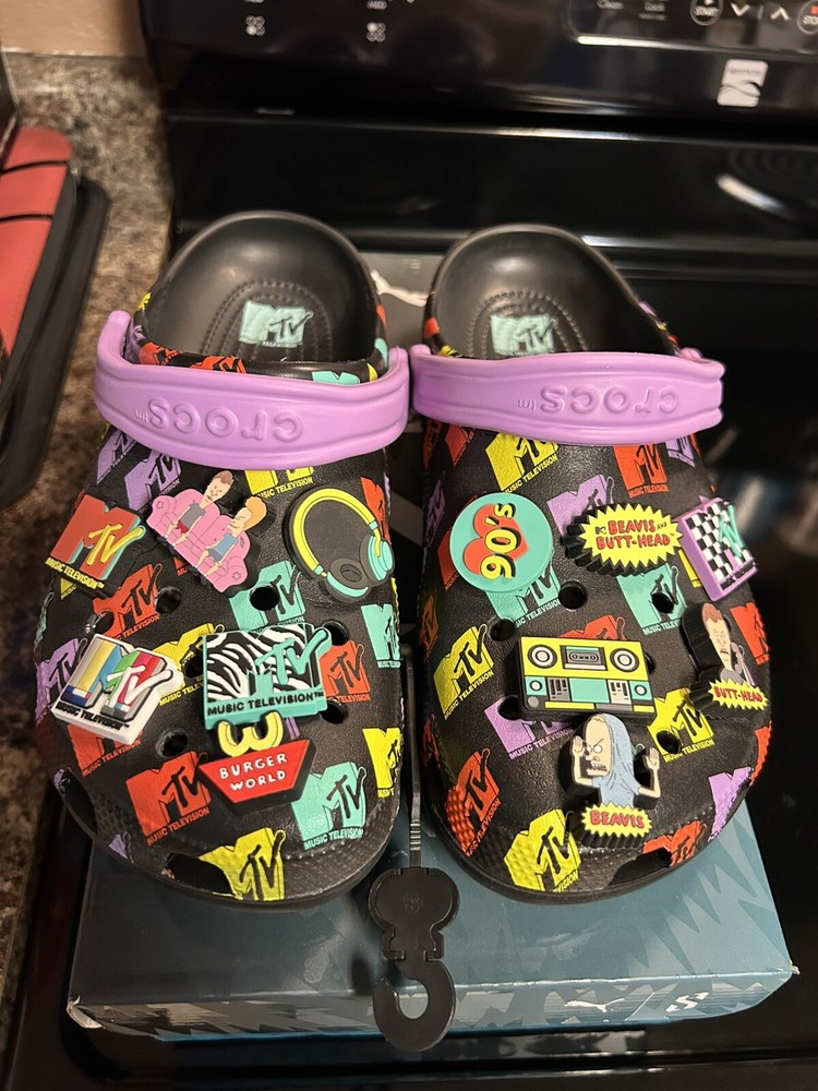 New crocs with extra jibbitz per pictures Includes all jibbitz in pictures New never worn Mens 8 / women’s 10 USA crocs sizes Pm for questions!