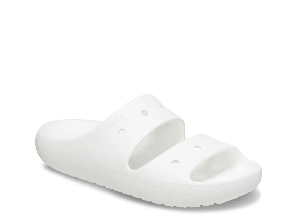 Crocs Unisex Classic Two-Strap Slide Sandals, White, 10 Women/8 Men