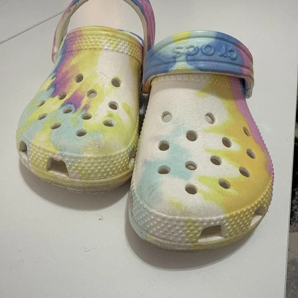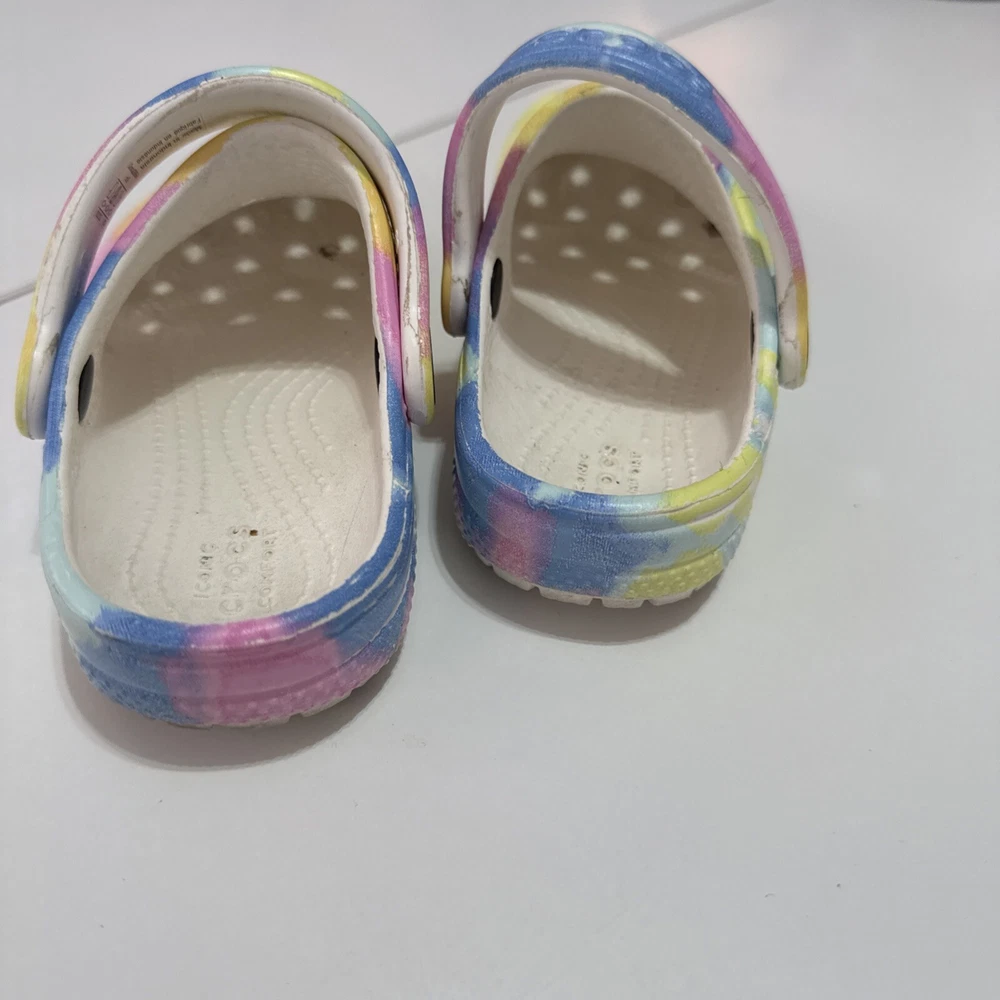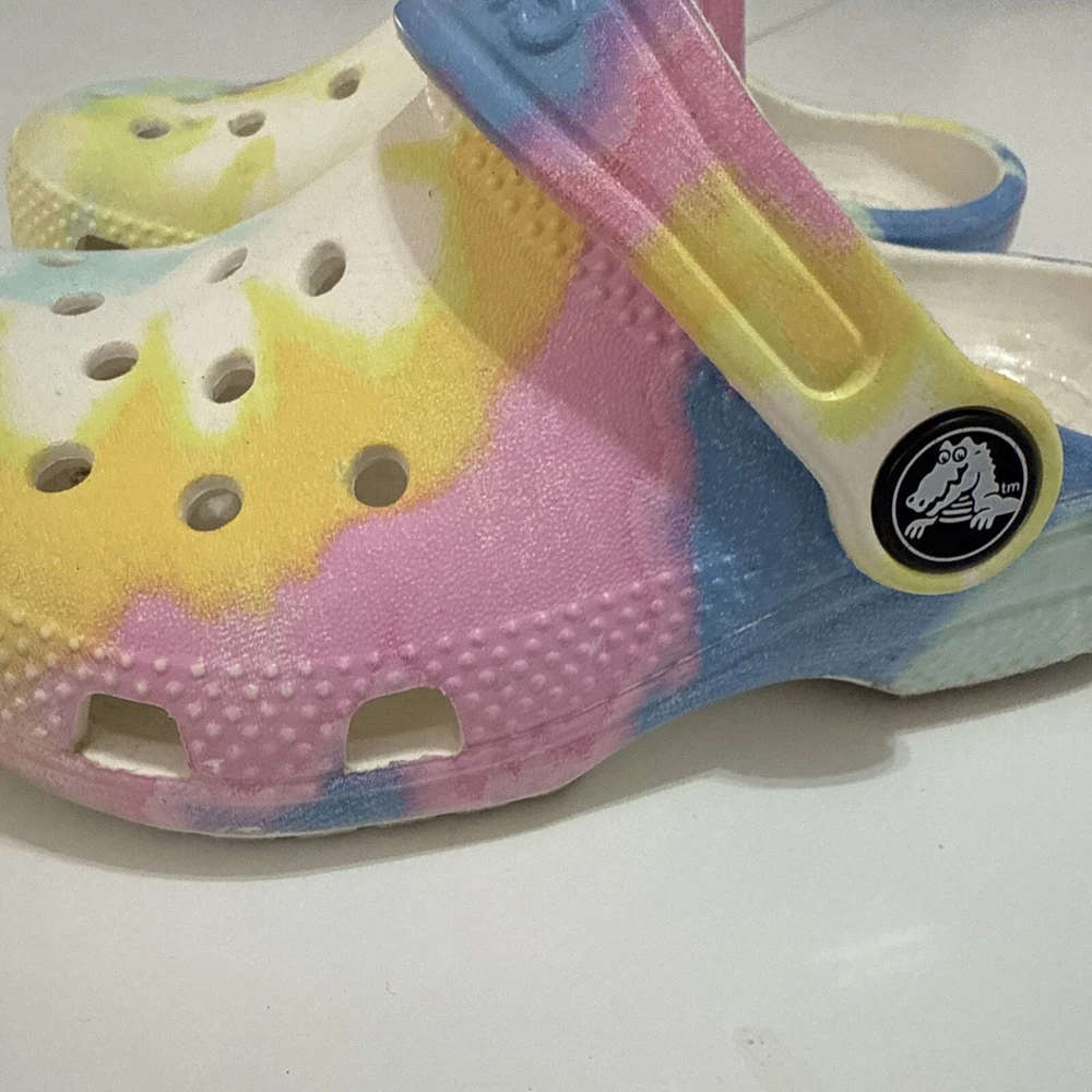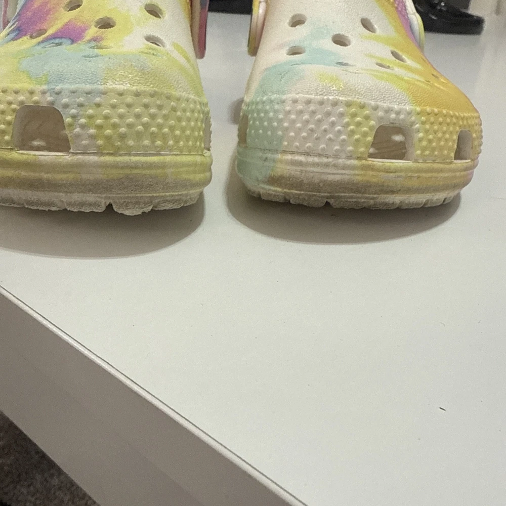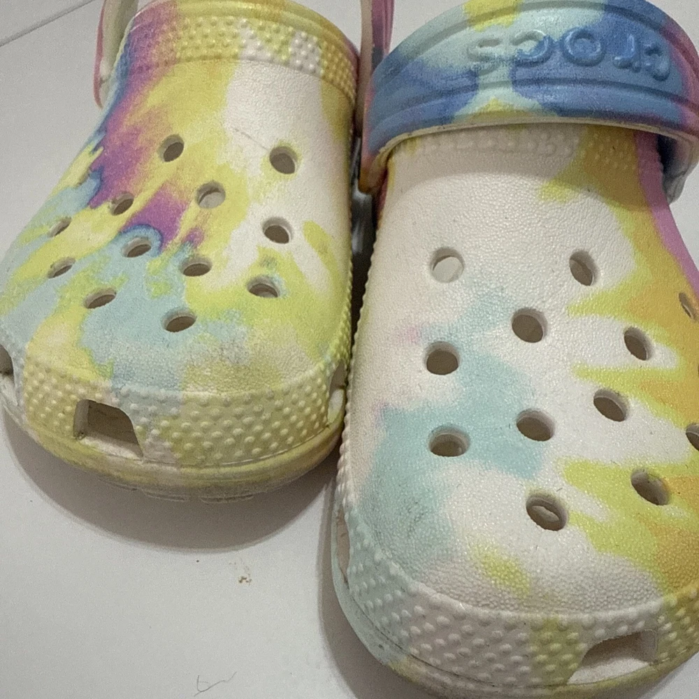 Crocs Unisex Clogs Shoes Yellow Blue Tie Dye Slip On Slingback Cut Out 9C. El estado es Pre-owned. Se envió con USPS Ground Advantage.