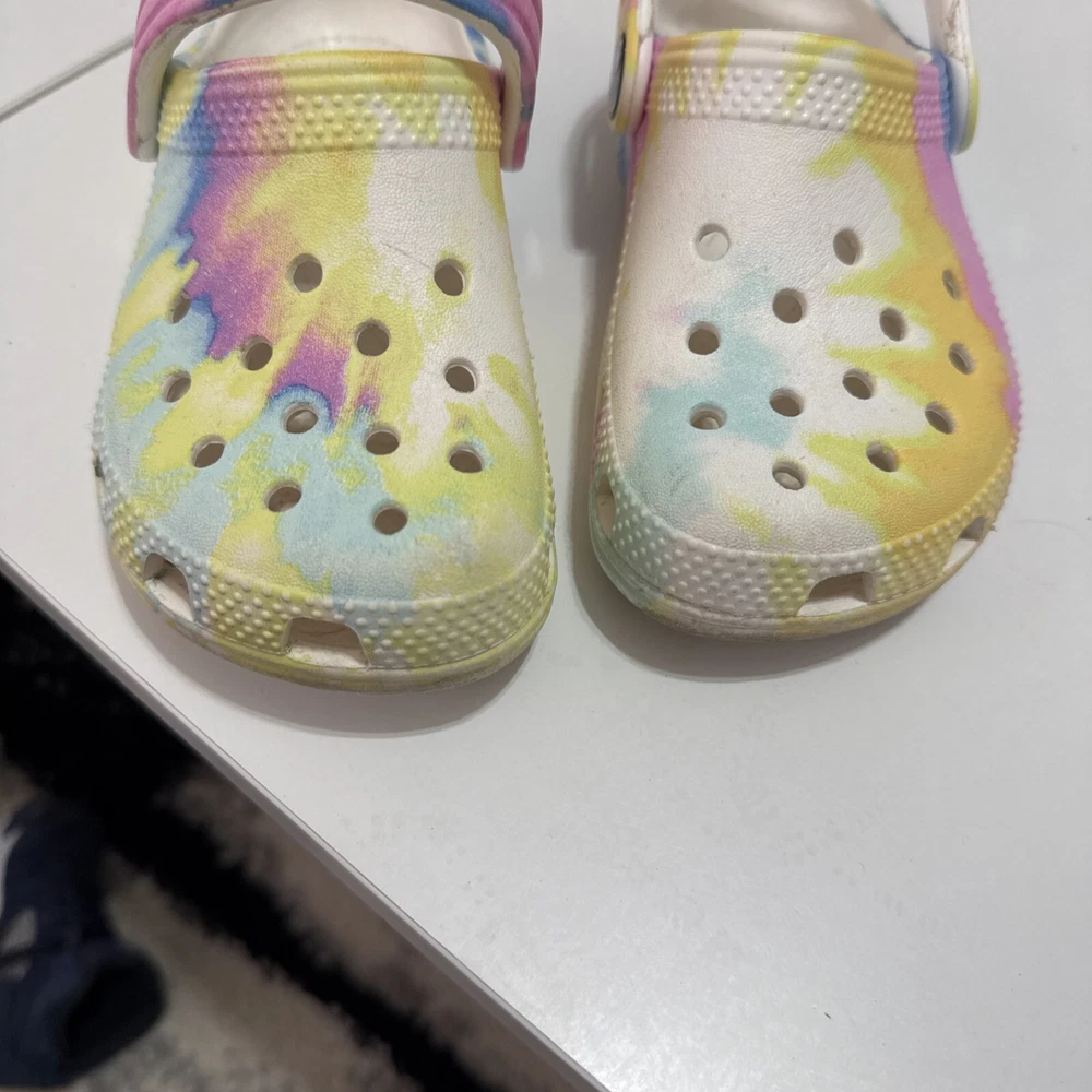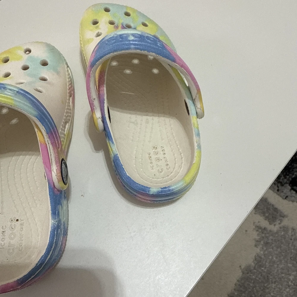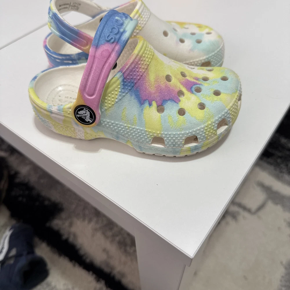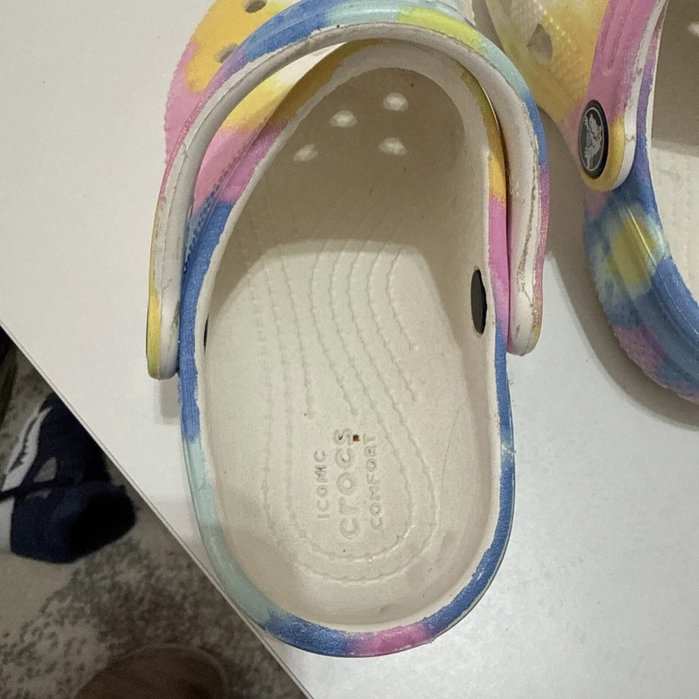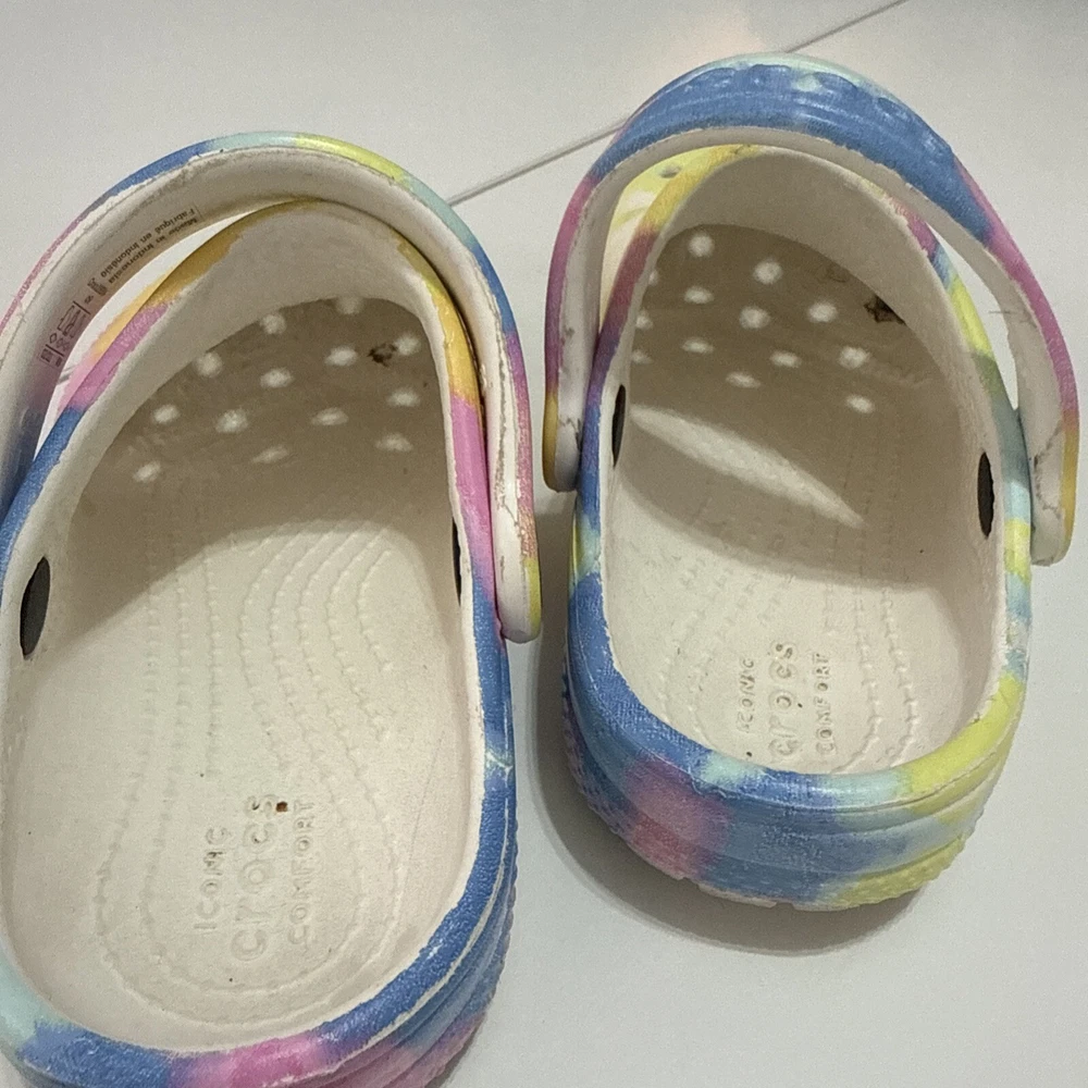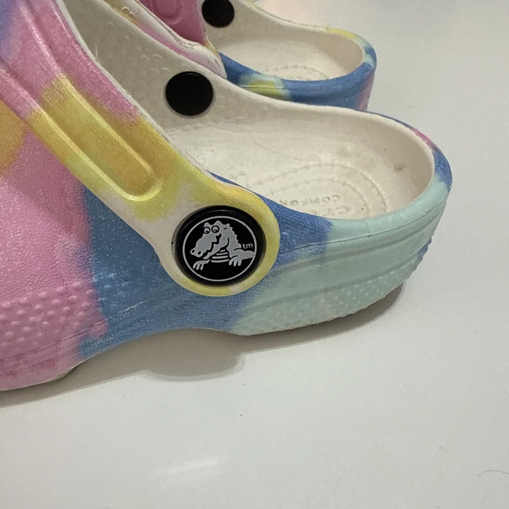 Crocs Unisex Clogs Shoes Yellow Blue Tie Dye Slip On Slingback Cut Out 9C. El estado es Pre-owned. Se envió con USPS Ground Advantage.