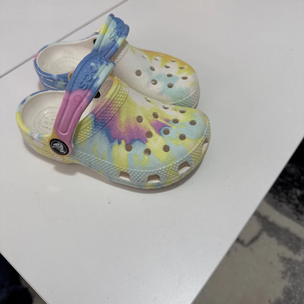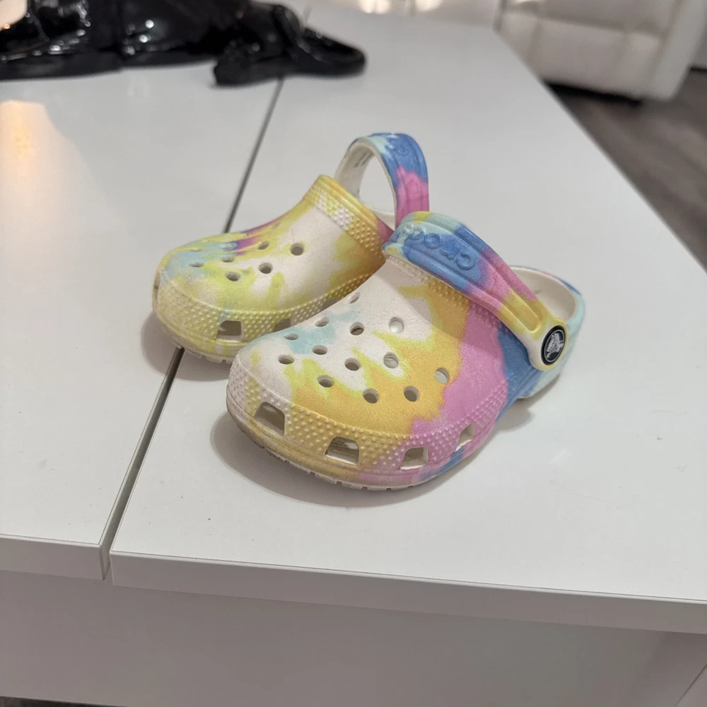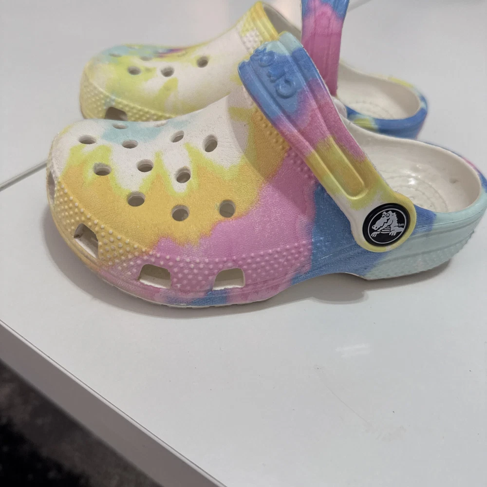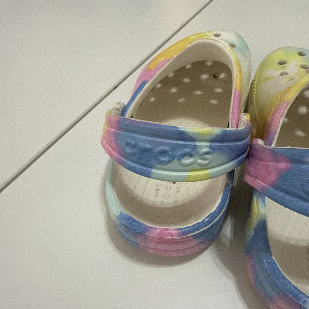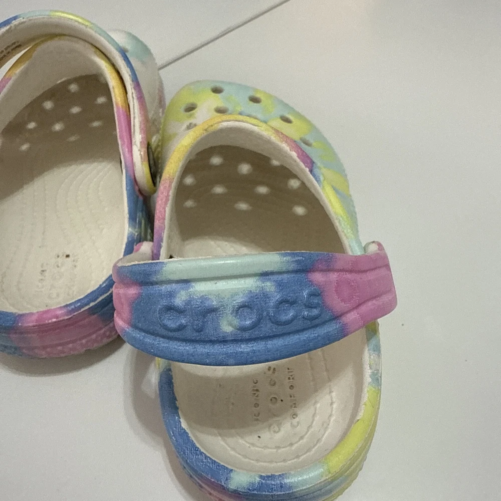 Crocs Unisex Clogs Shoes Yellow Blue Tie Dye Slip On Slingback Cut Out 9C. El estado es Pre-owned. Se envió con USPS Ground Advantage.