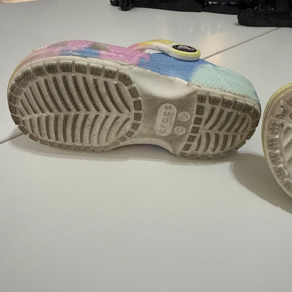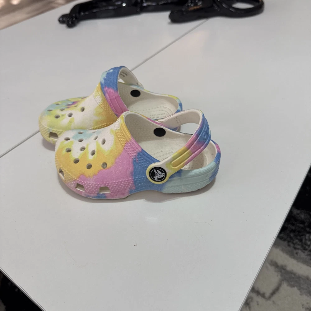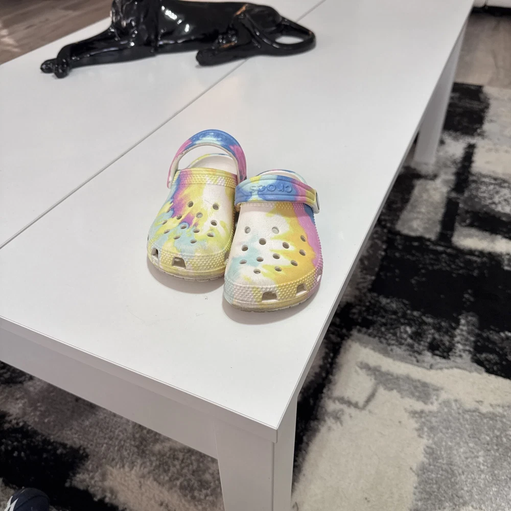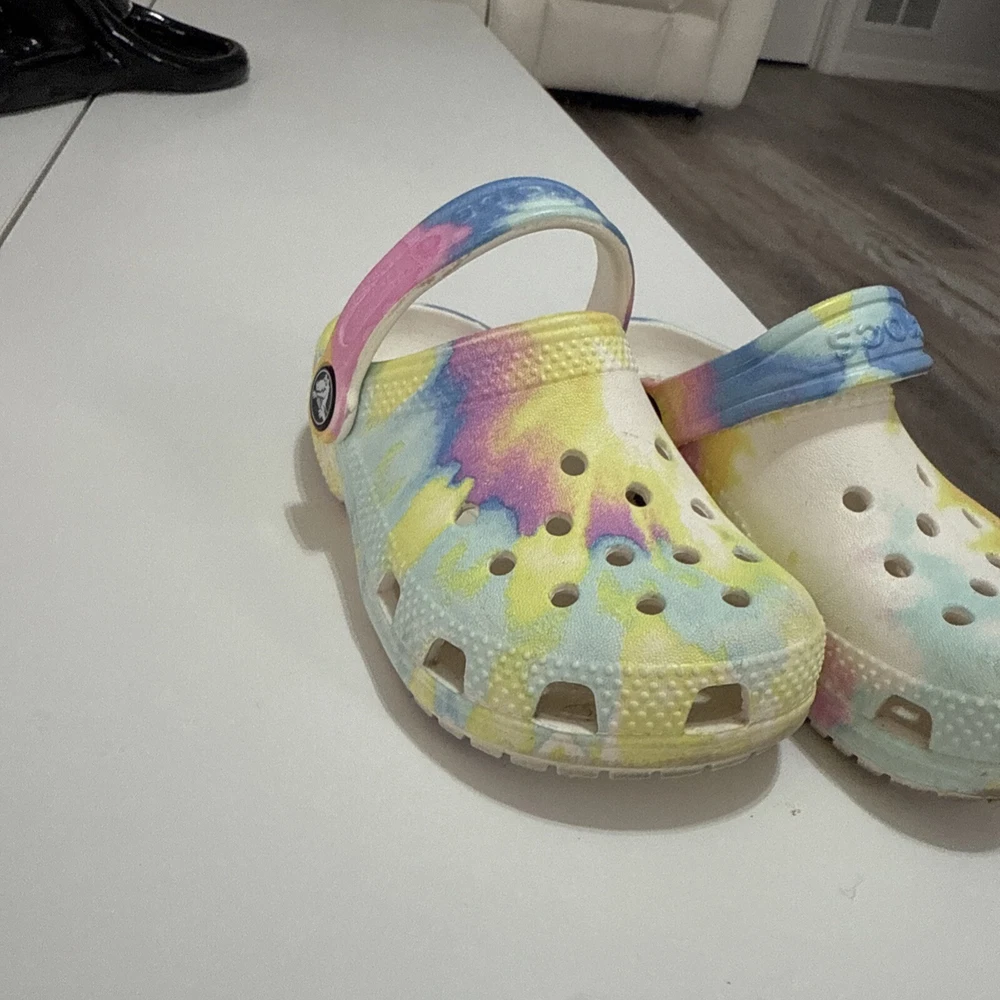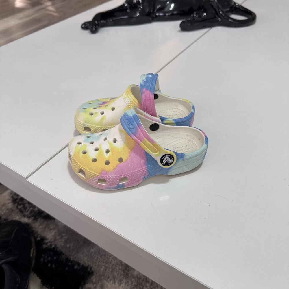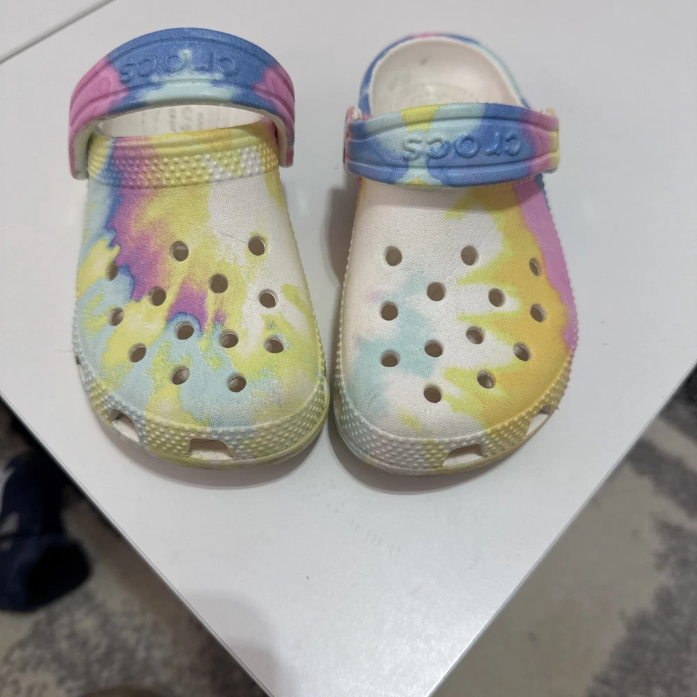 Crocs Unisex Clogs Shoes Yellow Blue Tie Dye Slip On Slingback Cut Out 9C. El estado es Pre-owned. Se envió con USPS Ground Advantage.