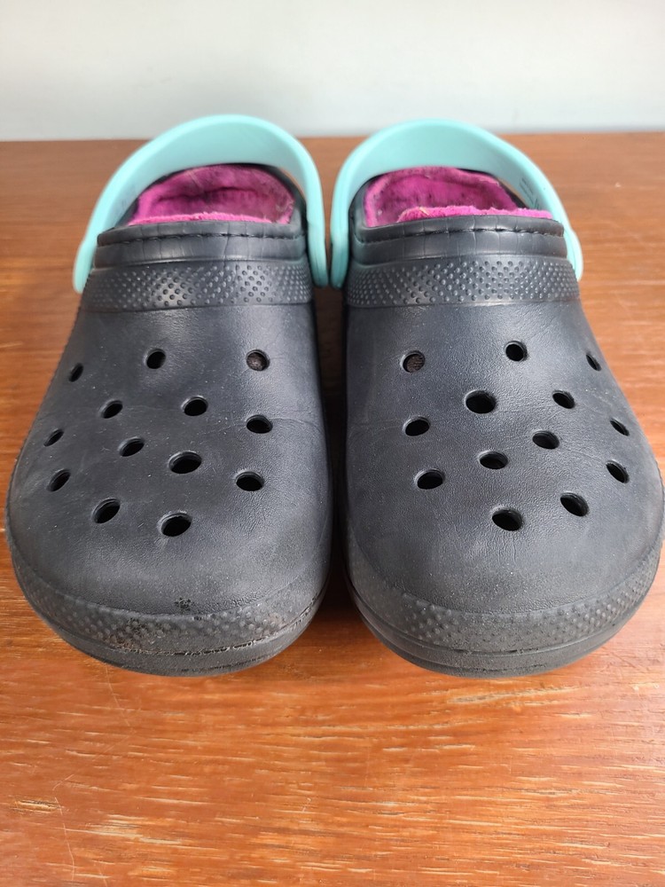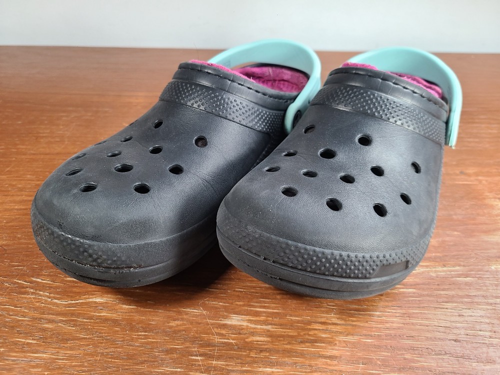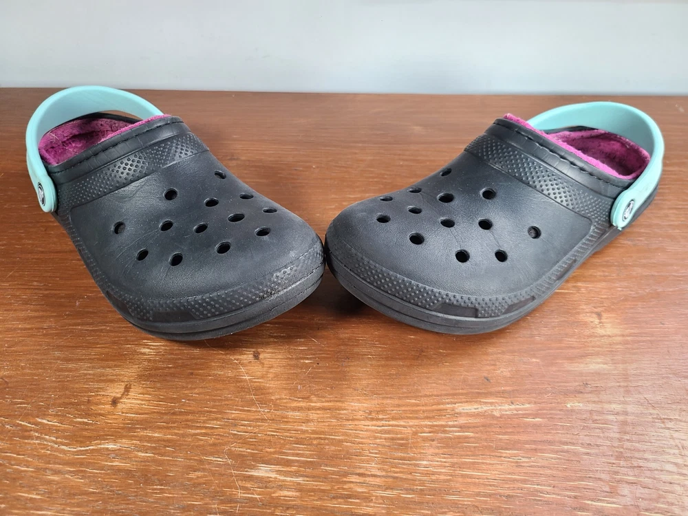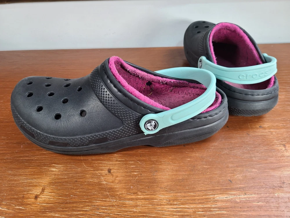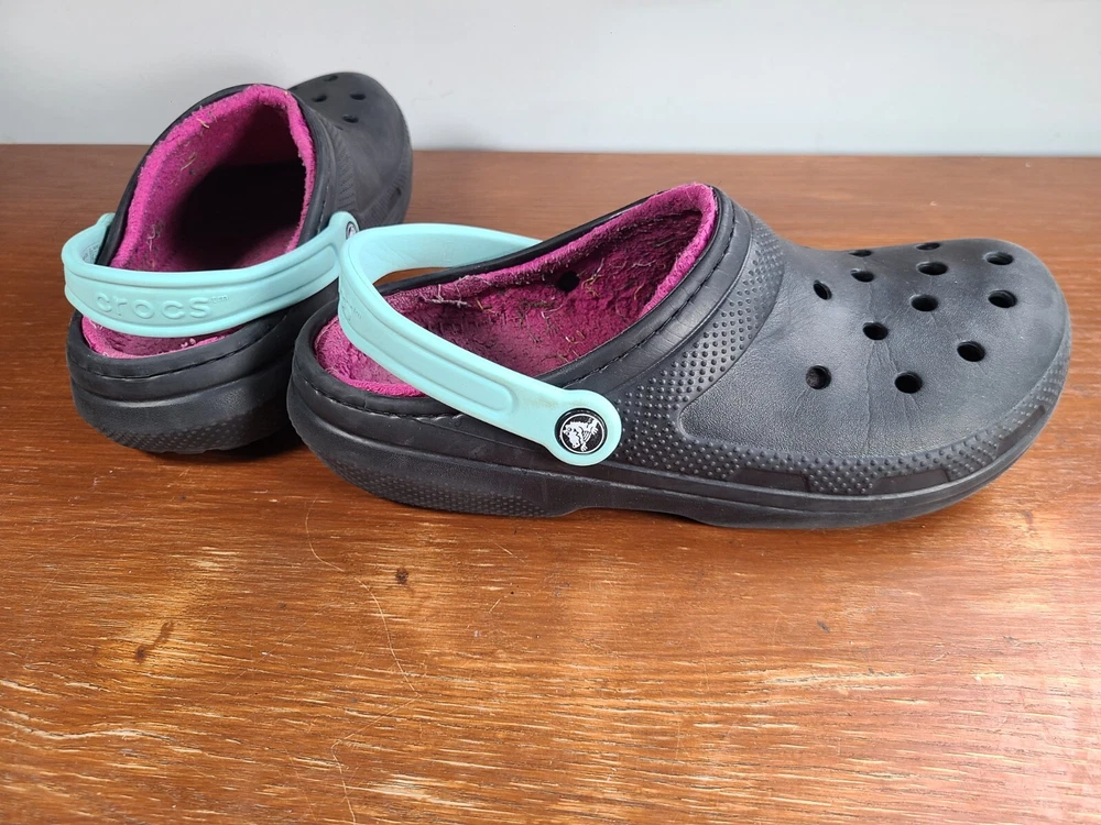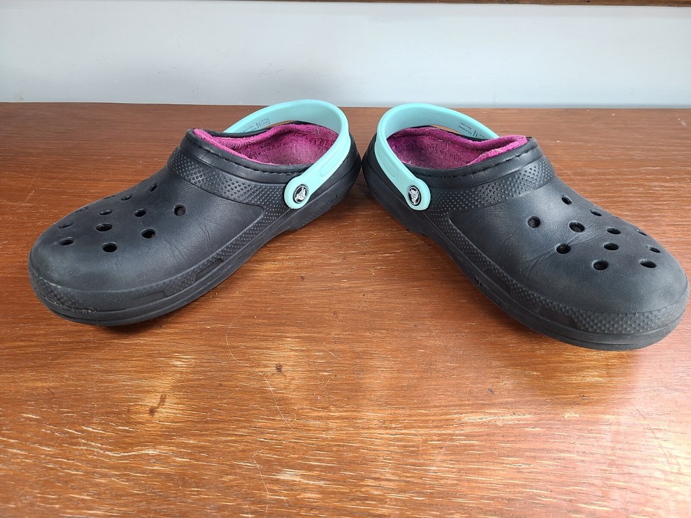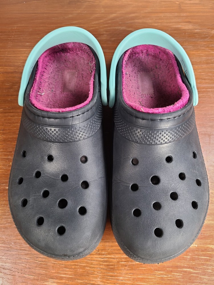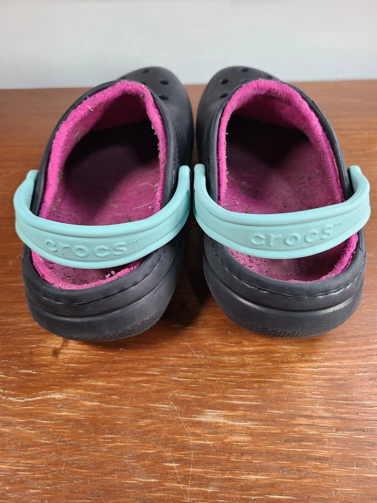 Crocs Unisex Classic Lined Fuzzy Clogs Black/Pink Mens Size 8 Womens Size 10. Crocs are in preowned condition. See pictures for details. Please ask any questions before purchase. If there is any issue, please contact us first before leaving feedback. Thank you.