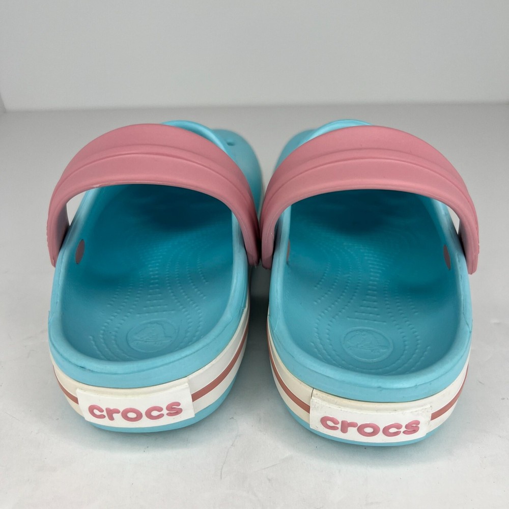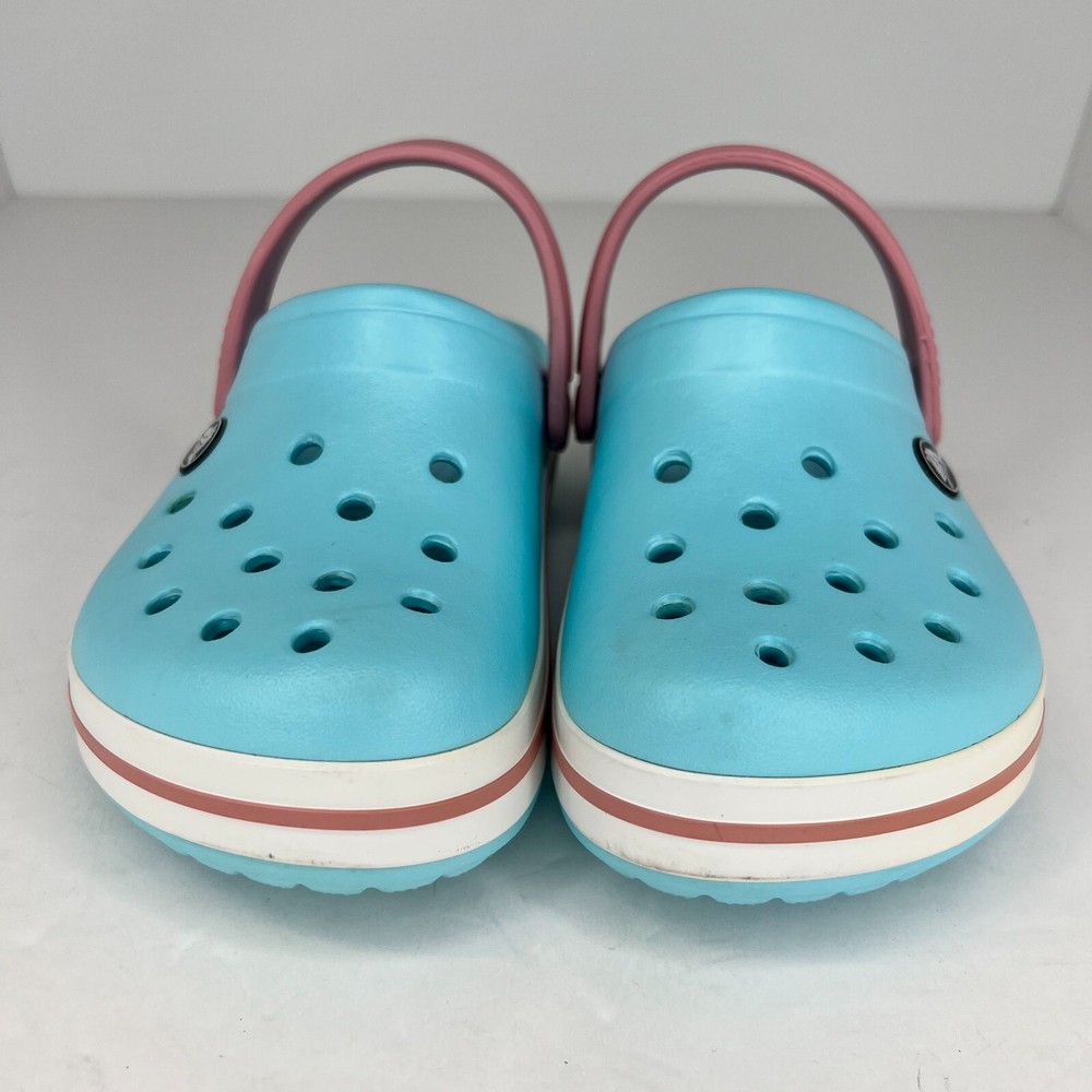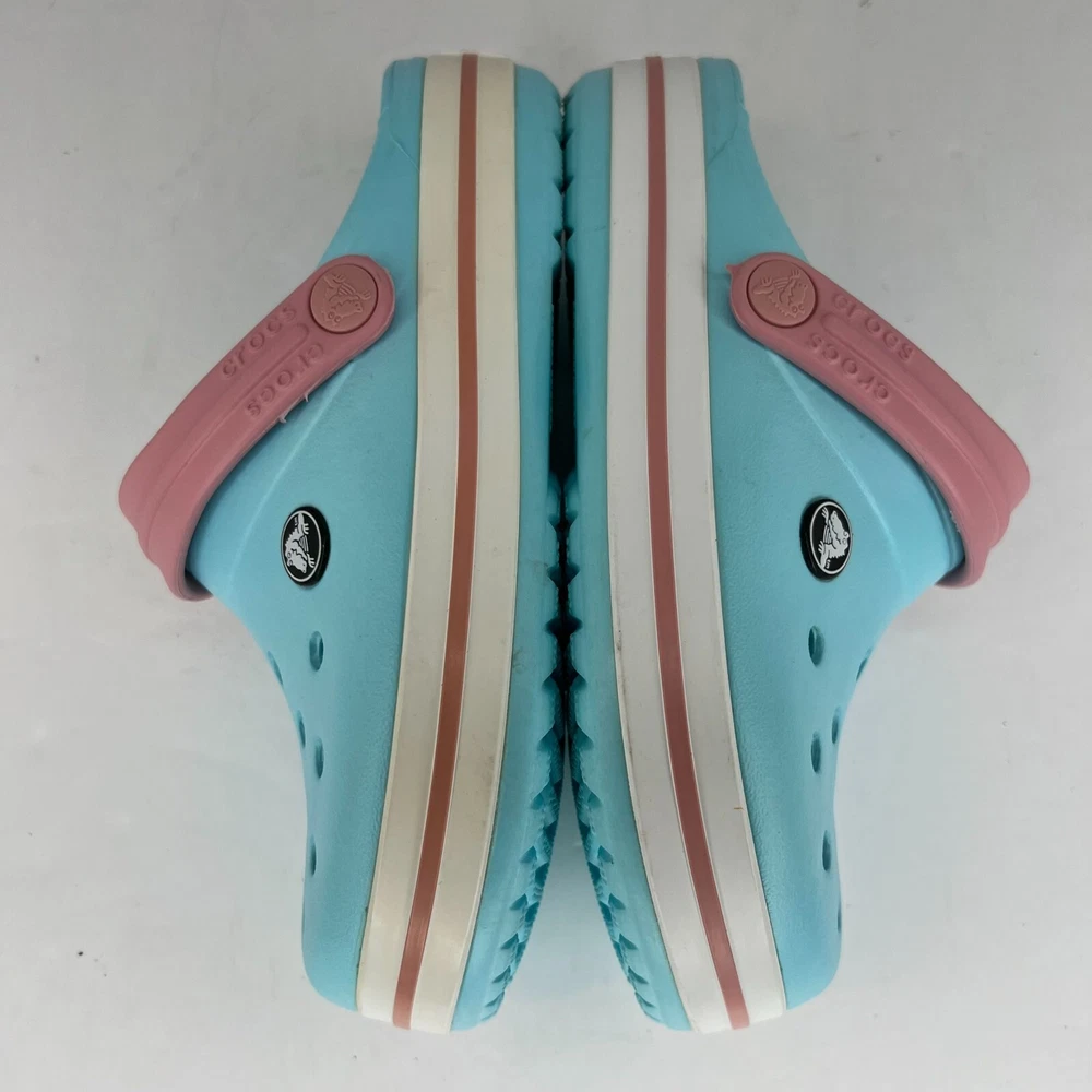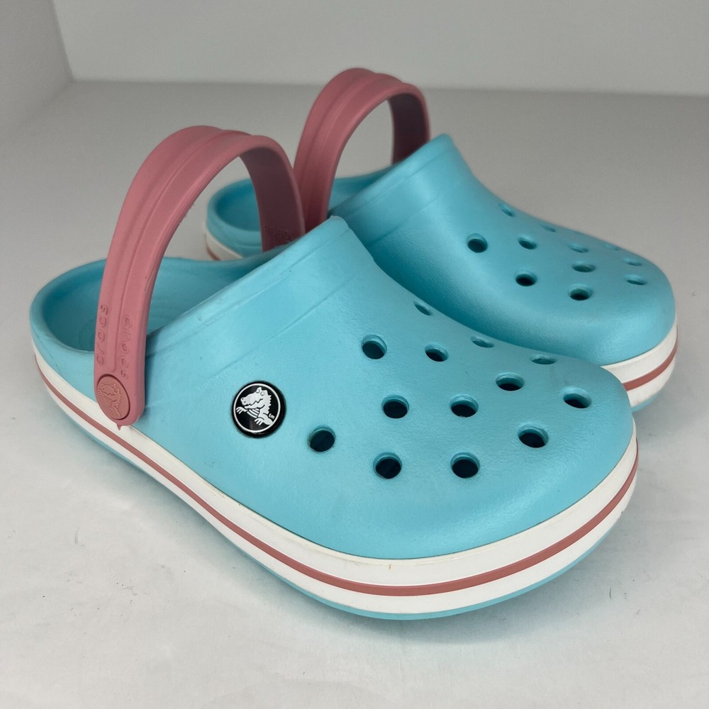 Step into summer with these classic Crocs Crocband sandals! The unisex design and ice blue pink color make them perfect for any occasion, whether it's a day at the beach or a casual outing. The slip-on closure and round toe shape ensure a comfortable fit for little feet, while the flat heel and rubber outsole provide traction for walking, fishing, and other activities. Crafted with a blended fabric upper and synthetic lining material, these sandals feature a solid pattern and clog style. The Crocs brand is known for their quality and durability, making these sandals a great investment for any child's summer wardrobe. Available in UK shoe size 1, US shoe size 2, and EU shoe size 32.5, these sandals are sure to be a hit with any young Crocs enthusiast. 100% CUSTOMER SATISFACTION IS OUR GOAL! Our items are always carefully examined for condition, measured if necessary, and photographed in a climate controlled and smoke-free environment. We make every attempt to accurately describe and clearly picture the items we have for sale. Please, ALWAYS view all of the photos. We value your business and our goal is your complete satisfaction. FAST SHIPPING All items are packaged with care and shipped out the same or next business day via USPS, FEDEX, or UPS with tracking numbers so you are always informed. RETURNS We offer a 30-day return policy. All items must be unused and unopened in the condition in which they were received, with original packaging, and all accessories included for return. REVIEWS - CUSTOMER SATISFACTION - COMMUNICATION We aim to make you happy. After you receive your shipment, please leave a positive review . If you have concerns or questions about your order, please contact us so we can resolve the issue. We will do our best to make you satisfied. THANK YOU FOR YOUR BUSINESS!