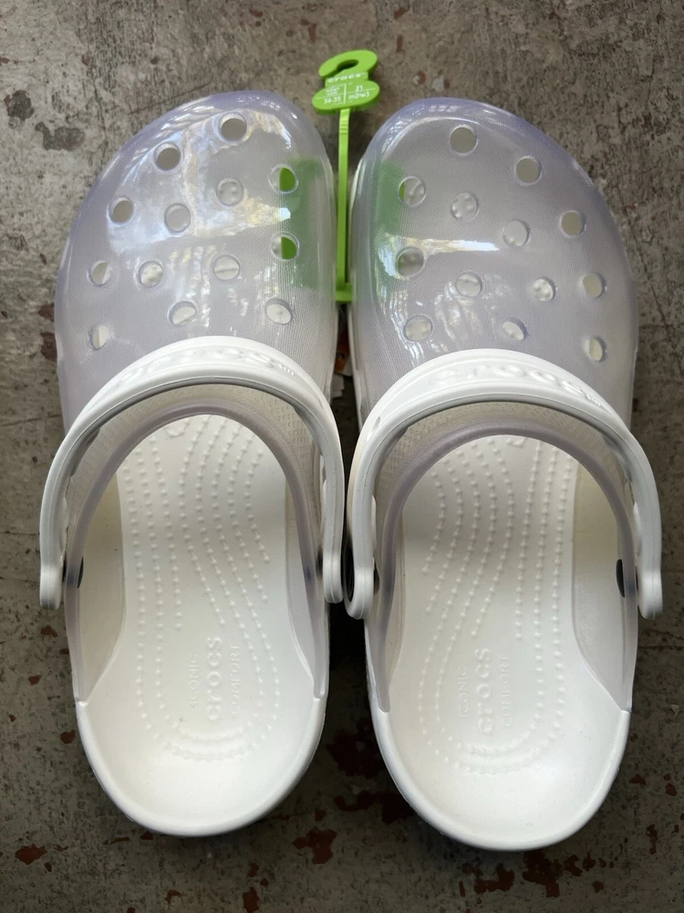 Crocs Unisex Men's and Women's Classic Translucent Clog, White, Size M3/W5