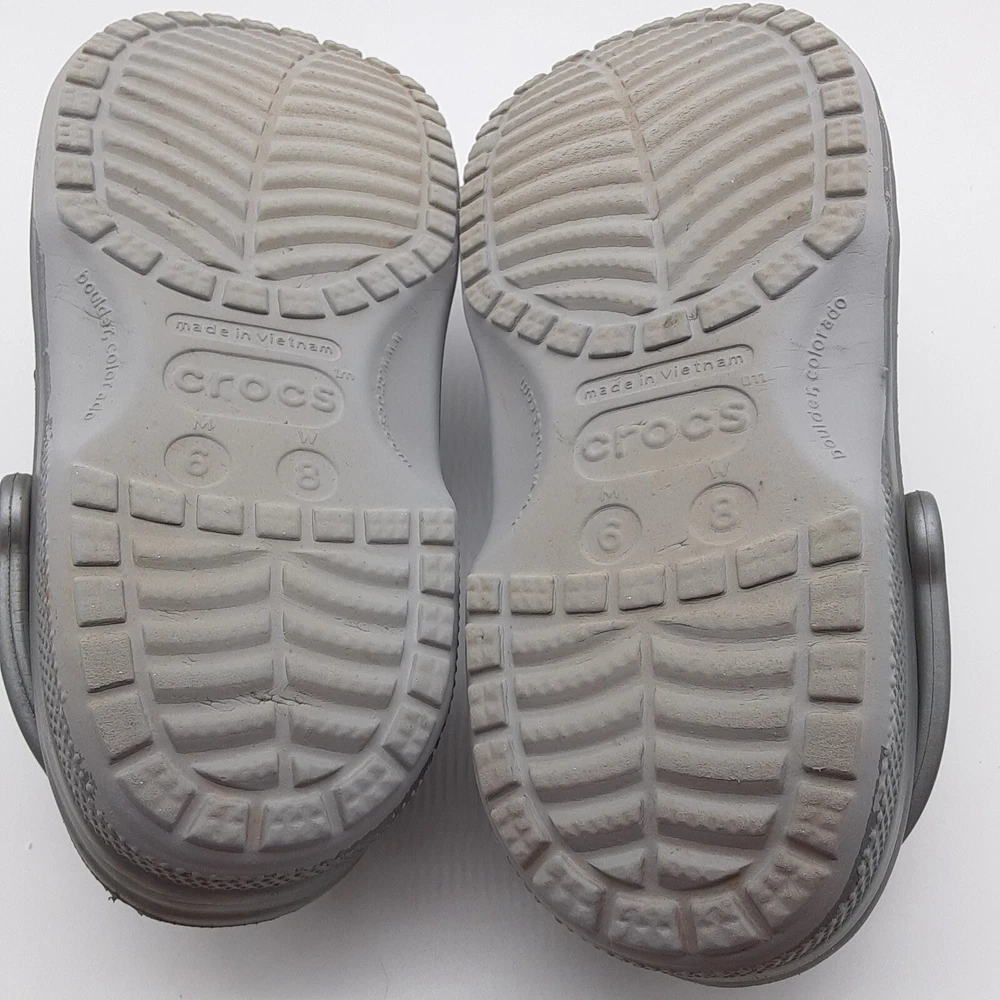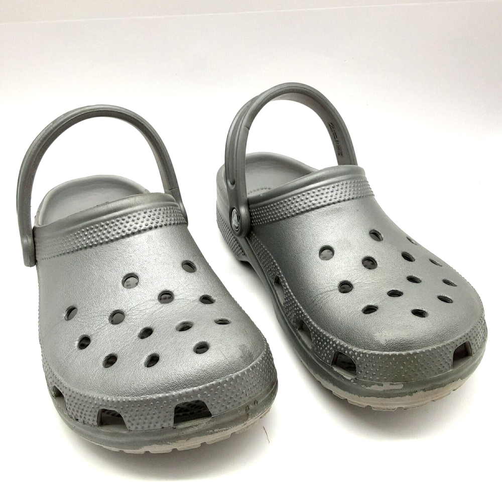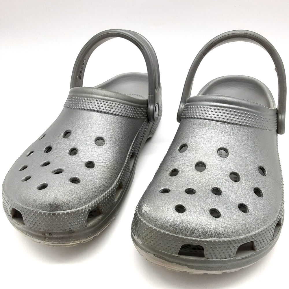 WE APPRECIATE OUR CUSTOMERS THANK YOU FOR SHOPPING WITH US!! Crocs Unisex Women's 8 Mens 6 Gray Classic Clogs Slip On Shoes *Please look at pictures as they are part of the description/details. *In Good Preowned Condition. *Thanks for looking! Terms and Conditions : Once a purchase has been made, it is legally binding contract. Payments: Payment is due when purchase is made, Thank you for your prompt payment. *If payment is not received within 4 days of purchase, then a Non-Paying Buyer Dispute will be filed, and eBay may mark it against your account. SHIPPING: We ship daily (Mon-Fri not to include holidays) and will ship within one business day of receiving payment! Upon Receiving : If you are satisfied with your product(s), please leave some positive feedback. *We love hearing that you have received your purchase(s), and are content, delighted, and untroubled. *Once you receive your purchase(s), please inspect them for any damage during transit. Report any damage within 24hrs via eBay e-mail. Return Policy : You may return unworn, unwashed merchandise in its original condition with all tags attached. If you bought a brand-new item, it MUST be returned brand new (Sealed and Any returns MUST be sent back to us complete and in the same condition as delivered to you Unopened). Items must be in new or original condition (free of odor, markings etc.) and ready for resale. Any serial or product numbers must match the purchased item for refund. PLEASE NOTE that shipping will not be refunded . Upon time of purchase, you are agreeing to this return policy. CHECKOUT: Please make sure that your address on file with eBay is complete and correct as we must use the address you have with eBay. *If you have any questions about your purchase, delivery, or a possible product return; Please contact us immediately and directly through your eBay accounts message center! *We are Eco-Friendly, leaving the lightest possible impact on our environment! Whenever possible we will reuse packing material to aid with our Eco goals. Customer service and feedback: If you have any questions about your purchase, delivery, or a possible product return; Please contact us immediately and directly through your eBay account message center! Your satisfaction is our top priority! Our goal is to earn your 5-star 100% feedback. Thank You for buying from us!