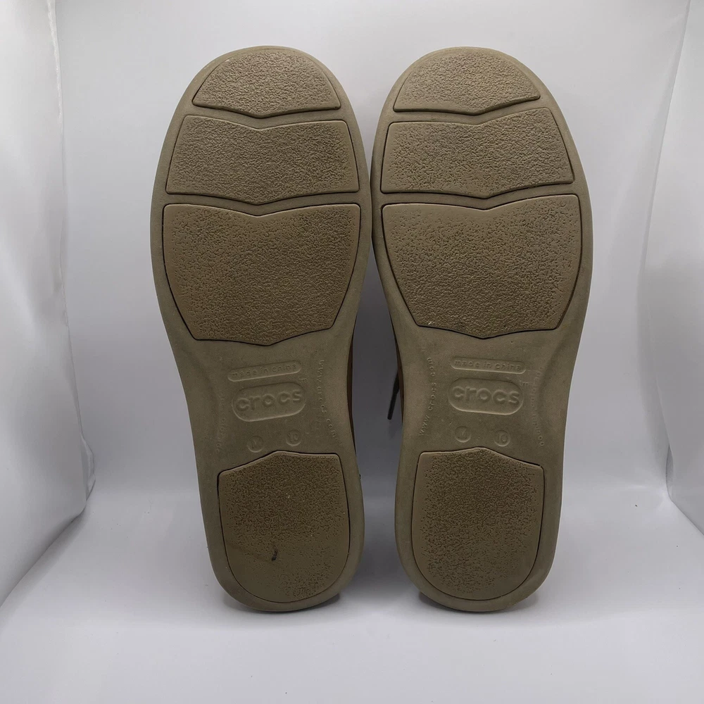 Crocs Venture Mens Size 10 Shoes Lace Up Khaki Beige See Pictures Small tear in one of The lace holes, doesn’t impede too much. See pics for details.